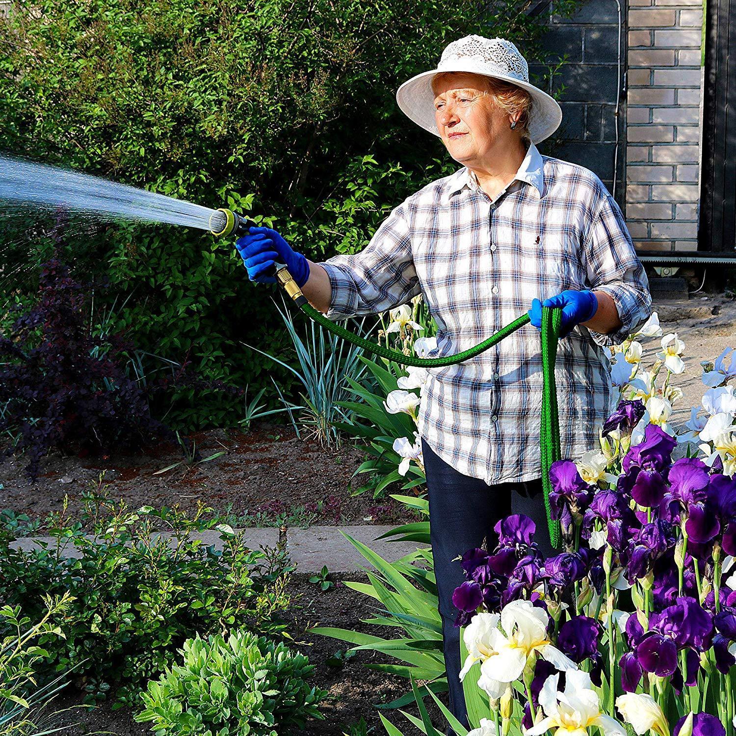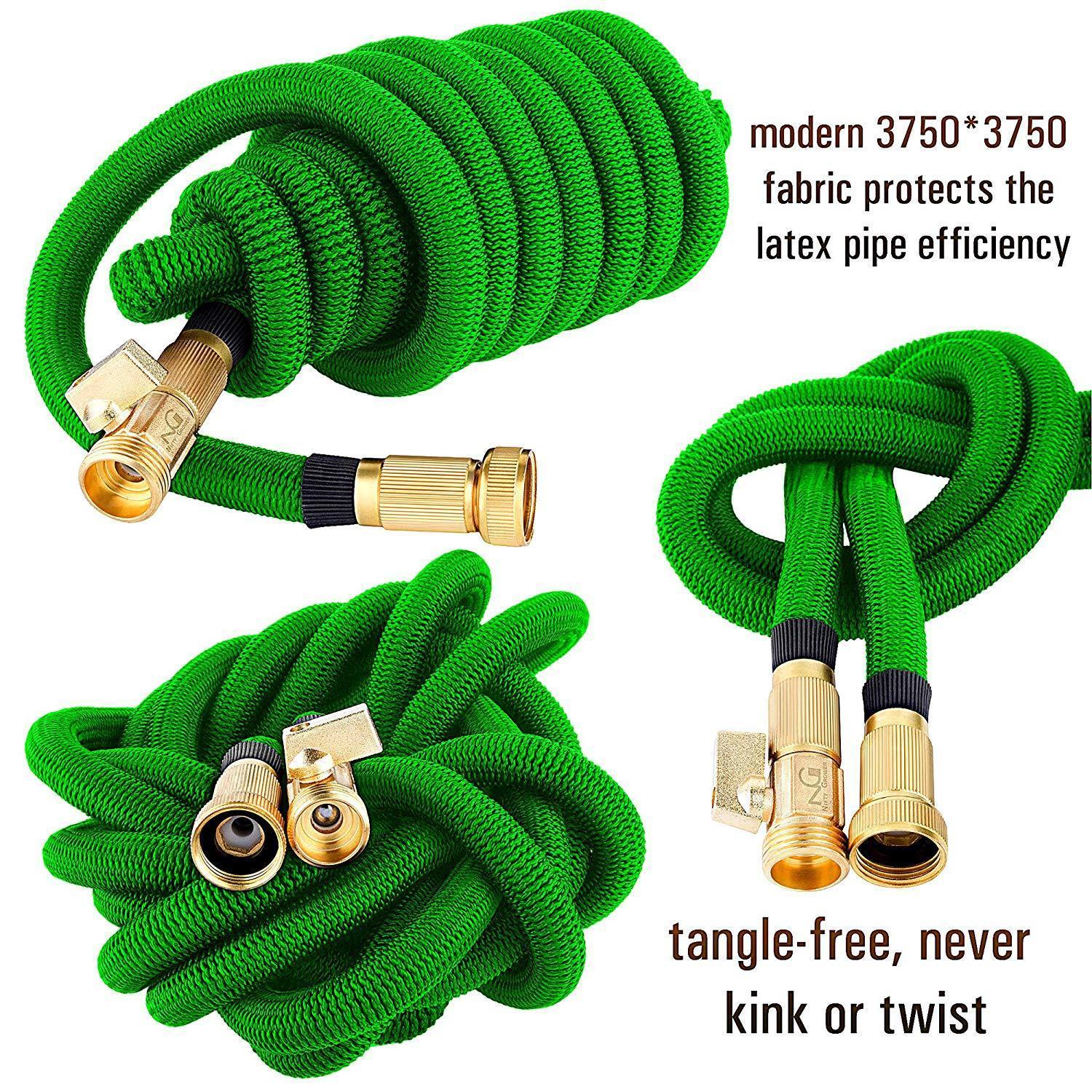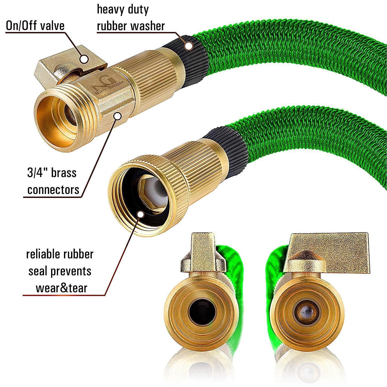 Nifty Grower 100ft Garden Hose - All New Expandable Water Hose with Double Latex Core 3/4" Solid Brass Fittings Extra Strength Fabric - Flexible Expanding Hose with Storage Bag for Easy Carry