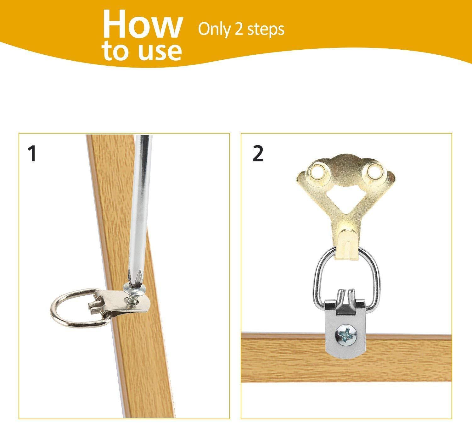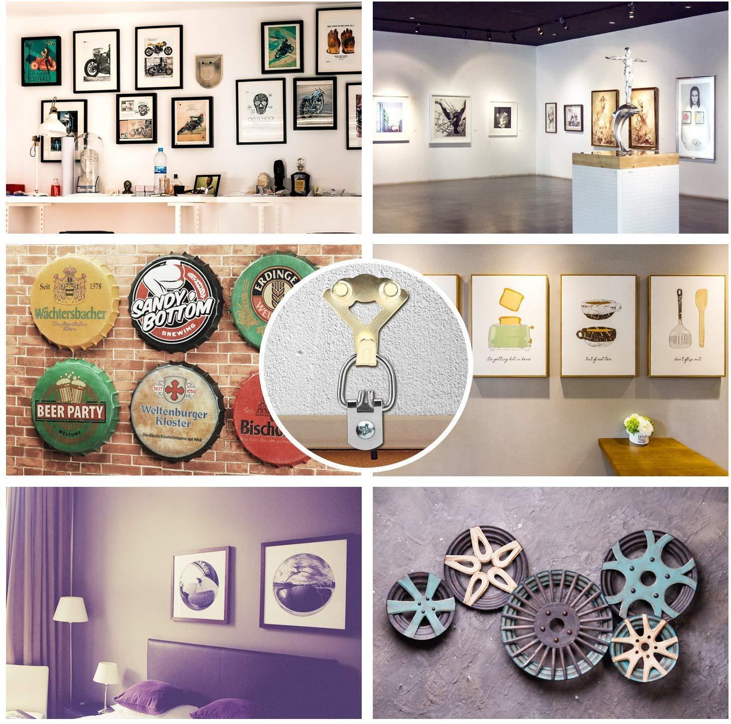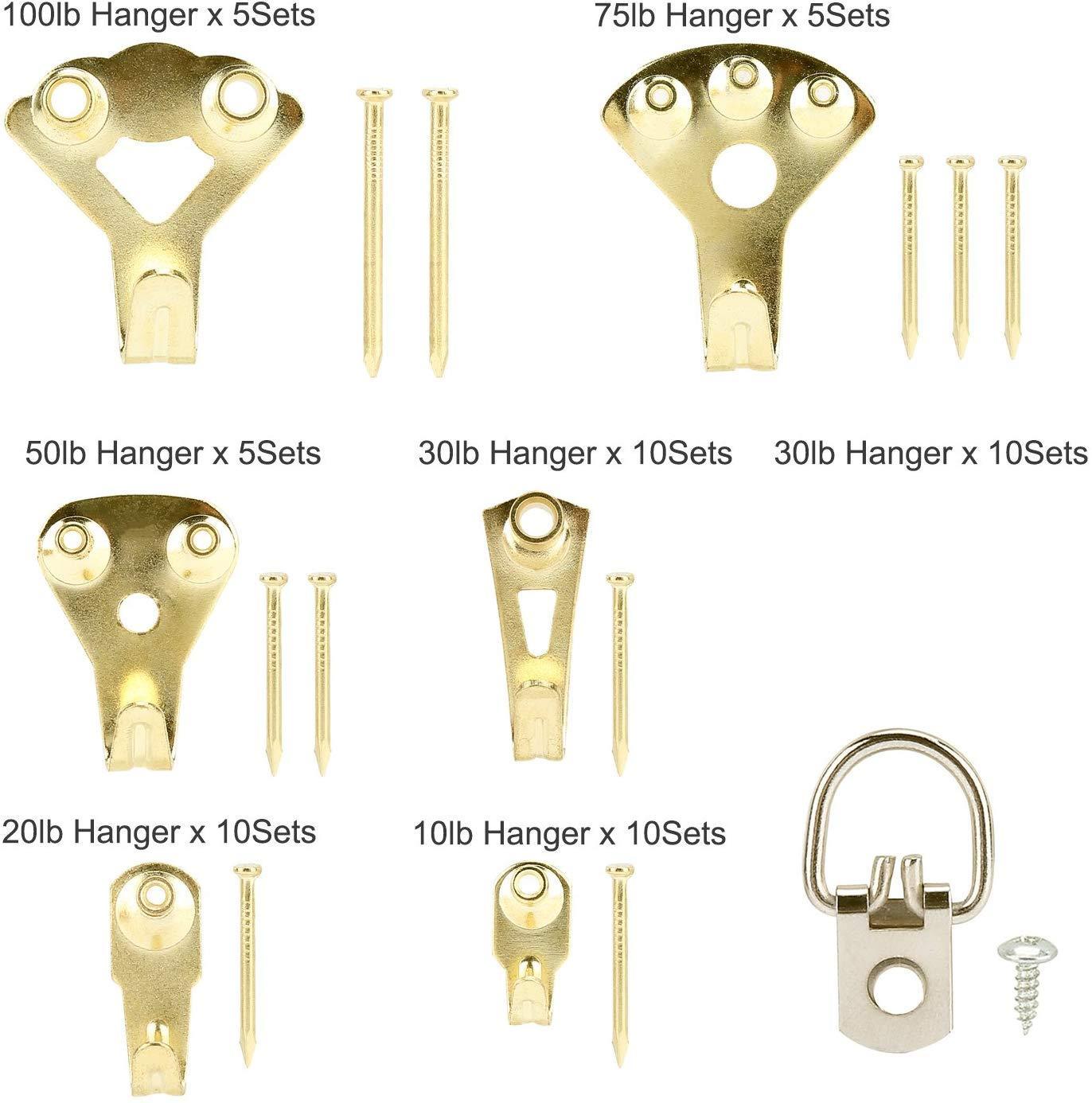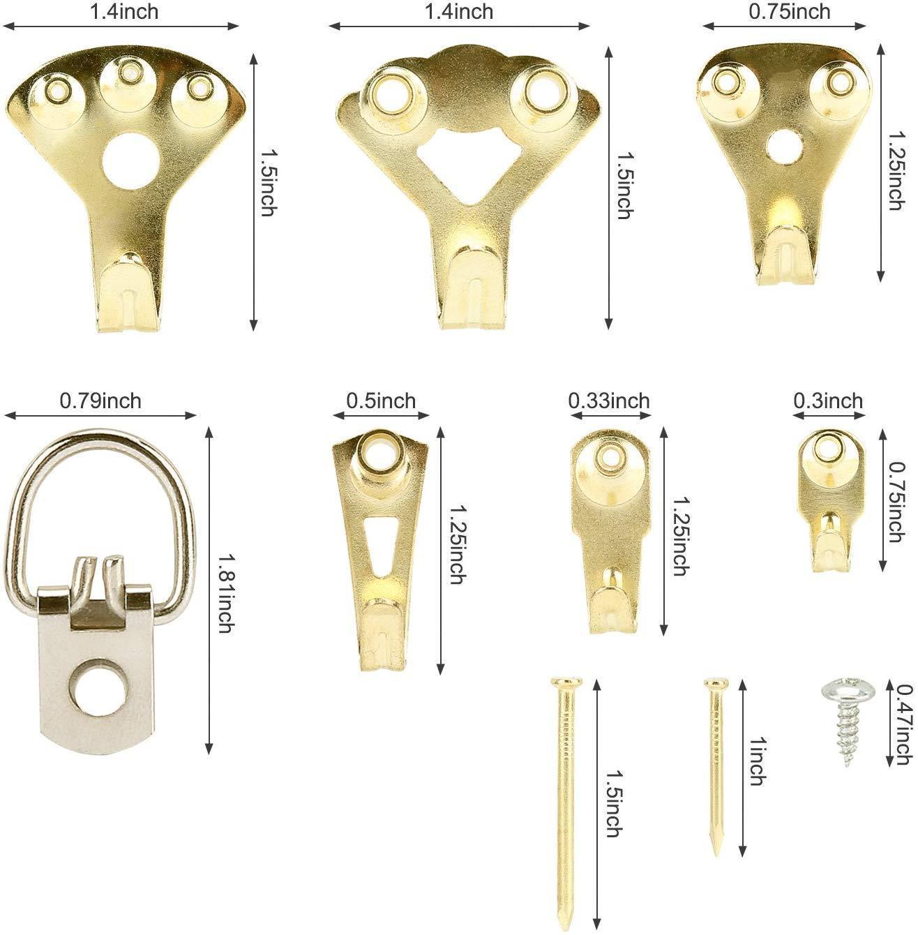 Picture Hangers, Picture Hanging Kit, 168 Pieces Picture Frame Hangers for Heavy Duty Picture Frame with Wall Mounting Nails, Tin Box Included (Golden)