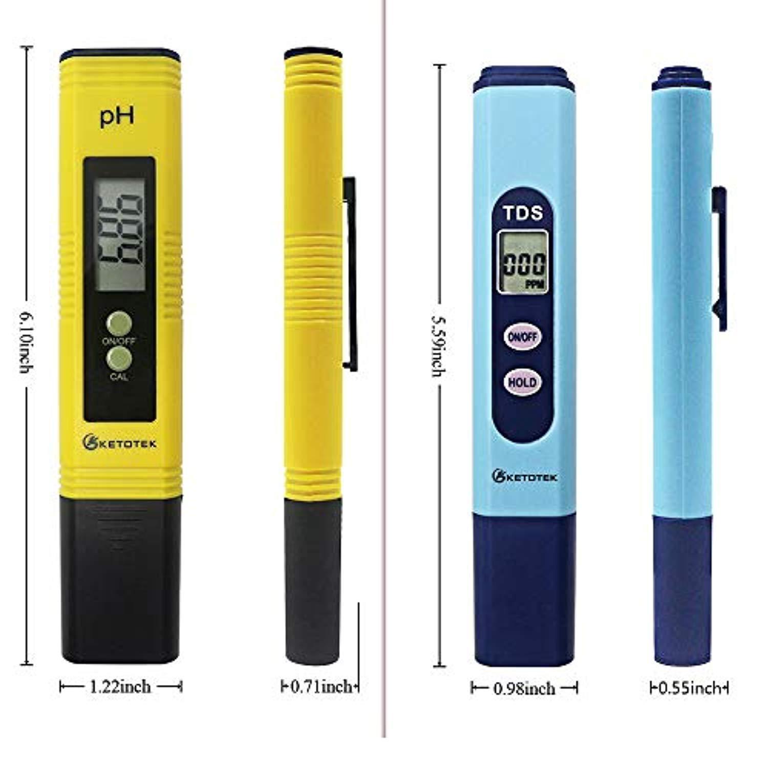 MORE CONVENIENT IN USING. 5 seconds to get the data of PH or PPM, know the water quality accurately. The pen meter partner also can be separately used whenever you need. WIDELY USED AND ACCURATE. Digital TDS meter has measurement range 0-9990ppm and ±2% accuracy, PH meter has measurement range 0.00- 14.00PH, 0.01PH accuracy and 0.01PH resolution. AUTO-OFF FUNCTION AND EASY TO USE. TDS pen meter and PH pen meter both have the function of Auto-off to save the battery’s life. The TDS meter and PH meter both are easy to use, just need to press “ON/OFF” to open and use it, and just need to press “ON/OFF” to close it. AUTOMATIC TEMPERATURE COMPENSATION ( ATC ). Digital TDS tester and PH tester both have the function of ATC, the measuring data won’t be influenced by the water temperature, no matter testing the TDS or PH of the water. SMALL SIZE AND POCKET PORTABLE. TDS tester and PH tester have small size and low weight as pen, they are easy to be carried, and convenient for you to take it in your pocket when you go out.
