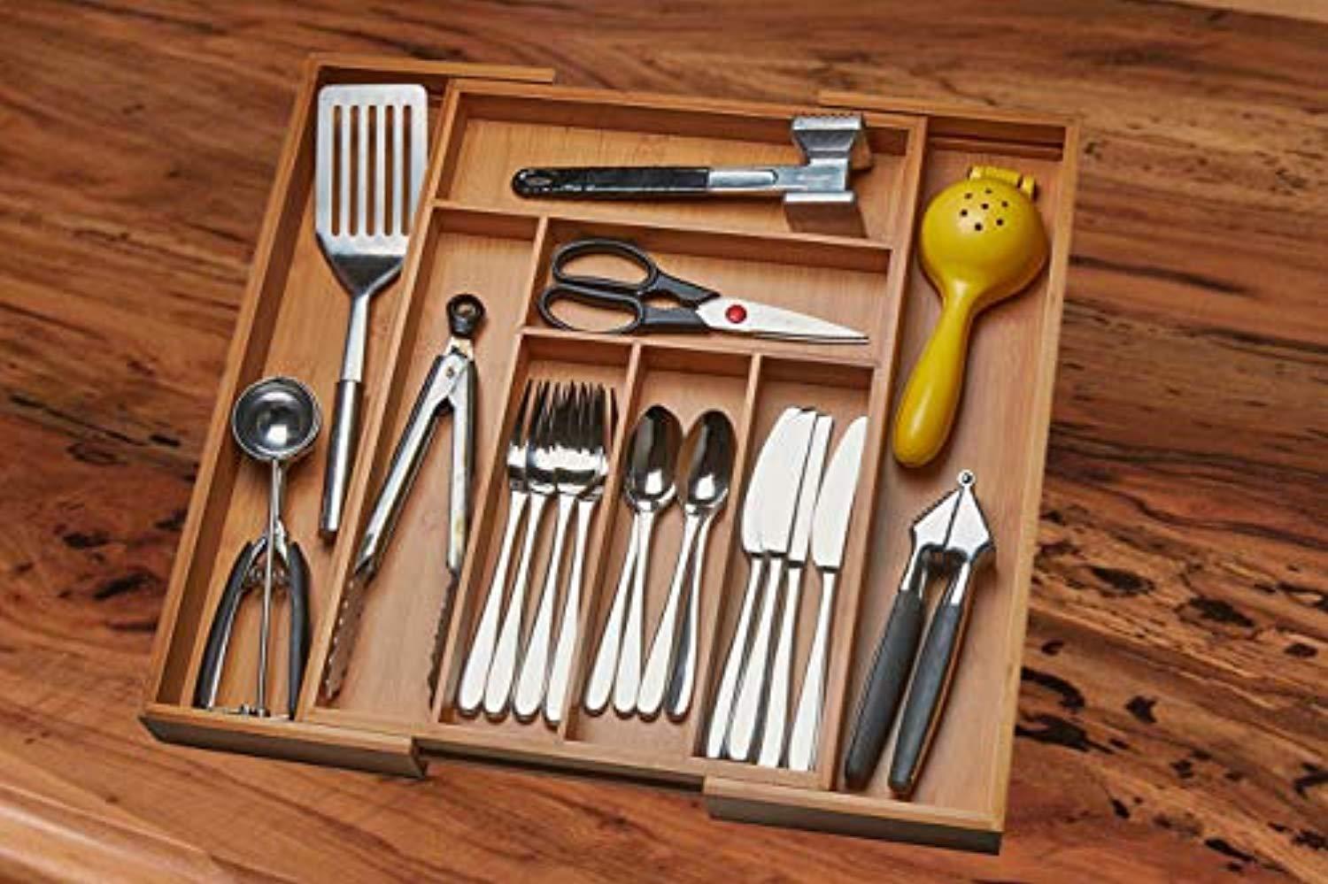 Kitchen Drawer Organizer, Adjustable Drawer Dividers to Fit Snugly Into Any Kitchen Drawer. Attractive Bamboo Wood Flatware, Cutlery and Utensil Tray is Also a Great Drawer Organizer Around the Home.