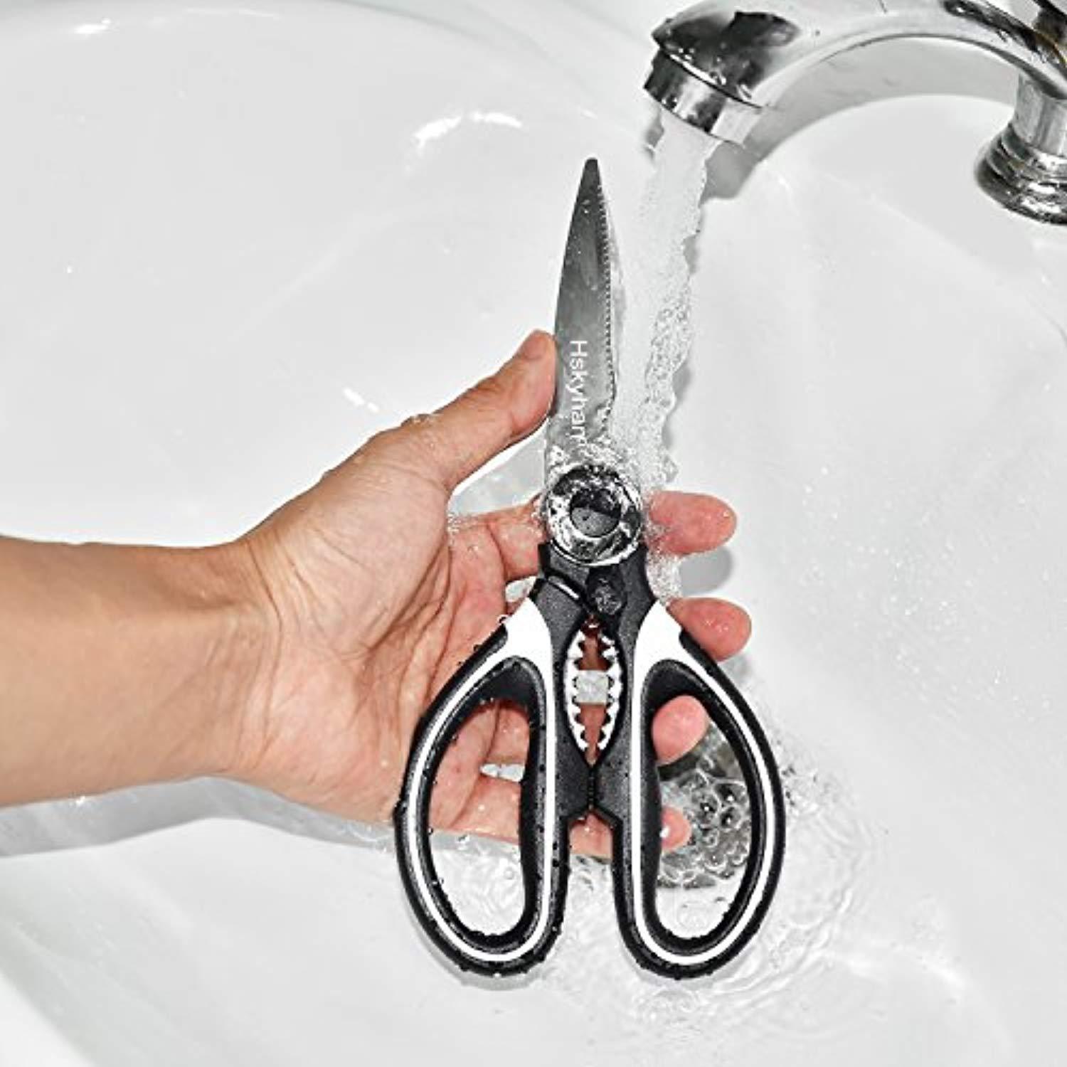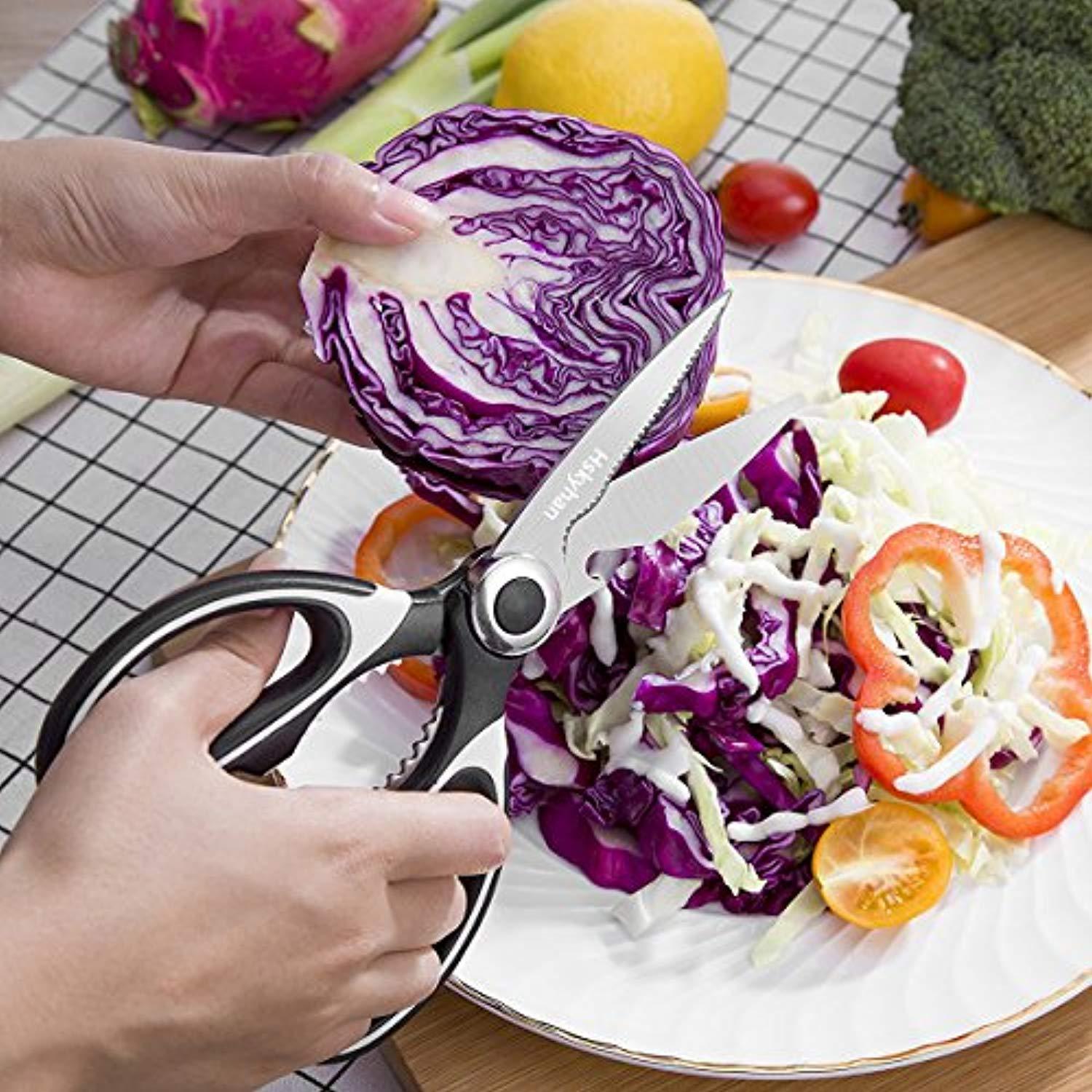 MULTI-FUNCTION KITCHEN SCISSORS: practical scissors for cutting meat, poultry, fish, vegetables, herbs and a variety of foods, can be used as a bottle opener and crack nuts, safe and fast.