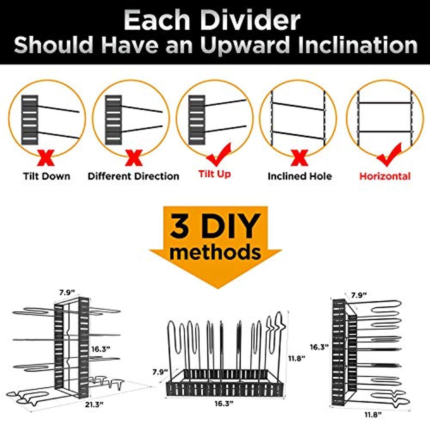 Pot Rack Organizer, 3 DIY Methods, Height and Position are Adjustable 8+ Pots Holder, Black Metal Kitchen Cabinet Pantry Pot Lid Holder