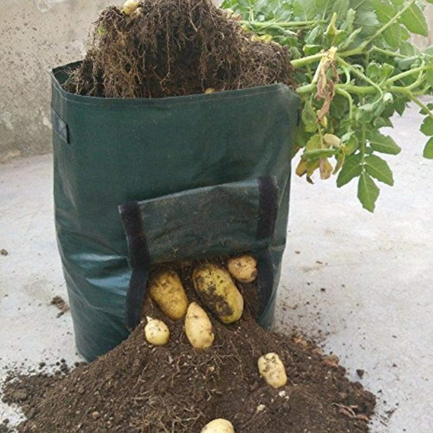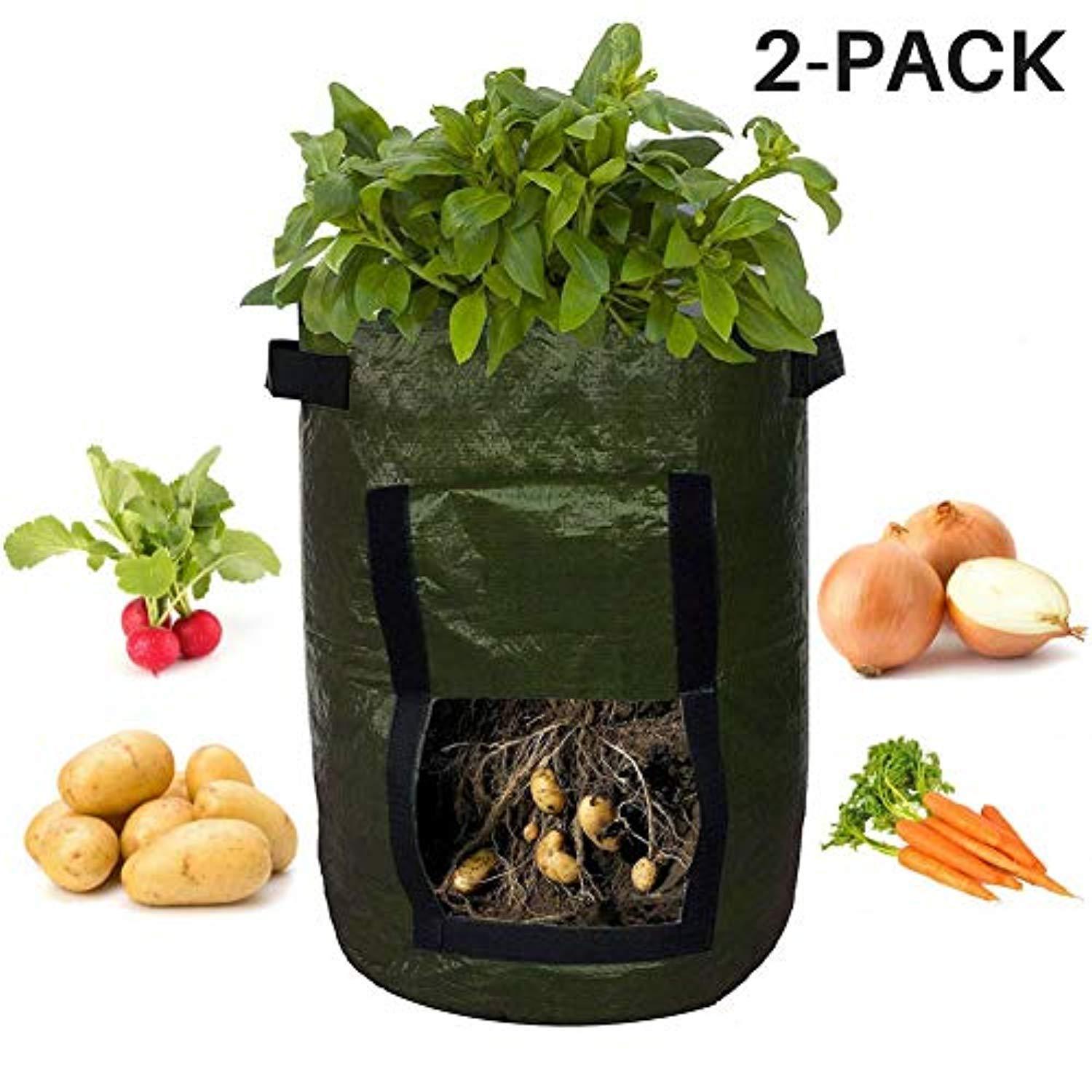 ATEKKi Potato Grow Bags 2-Pack 10 Gallon Planter, Access Flap, Handles, Gardening Planter, Smart Aeration Fabric - Vegetables, Carrot, Tomato, Onion - Growing Planting Bags - Heavy Duty Container Pot