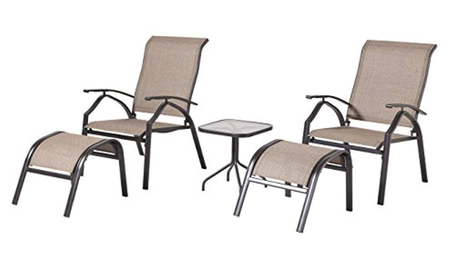 Backyard Classics Astoria 5-Piece Patio Seating Set with Adjustable Sling Chair, Ottomans and Glass Table Top
