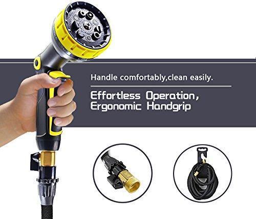 9 MULTIFUNCTIONAL NOZZLE : Our garden hoses come with 9-pattern adjustable hose spray nozzle. You can twist the hoses spray rotating ring to choose an appropriate pipes pattern According to your needs.
