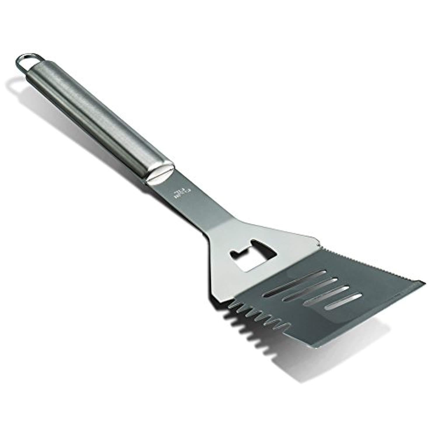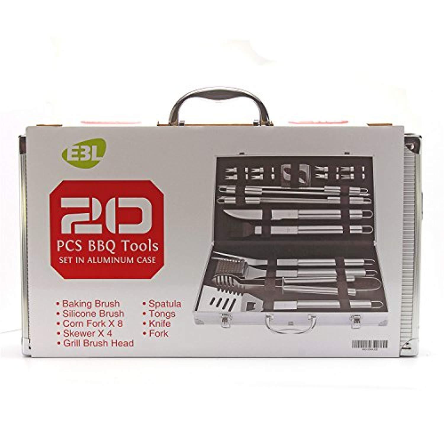 High grade 18/8 stainless steel grilling tools - will not rust/crack, easy to clean. Elongated hollow handles keep your hands safe from the heat, while being light to hold. Handle loops to hang on grill hooks, handy and convenient. All bbq grill tools are secured with elastics and velcro tapes, will not fall out of place. Neat and organized. Sturdy aluminum case with dual latches, easy to storage and carry.