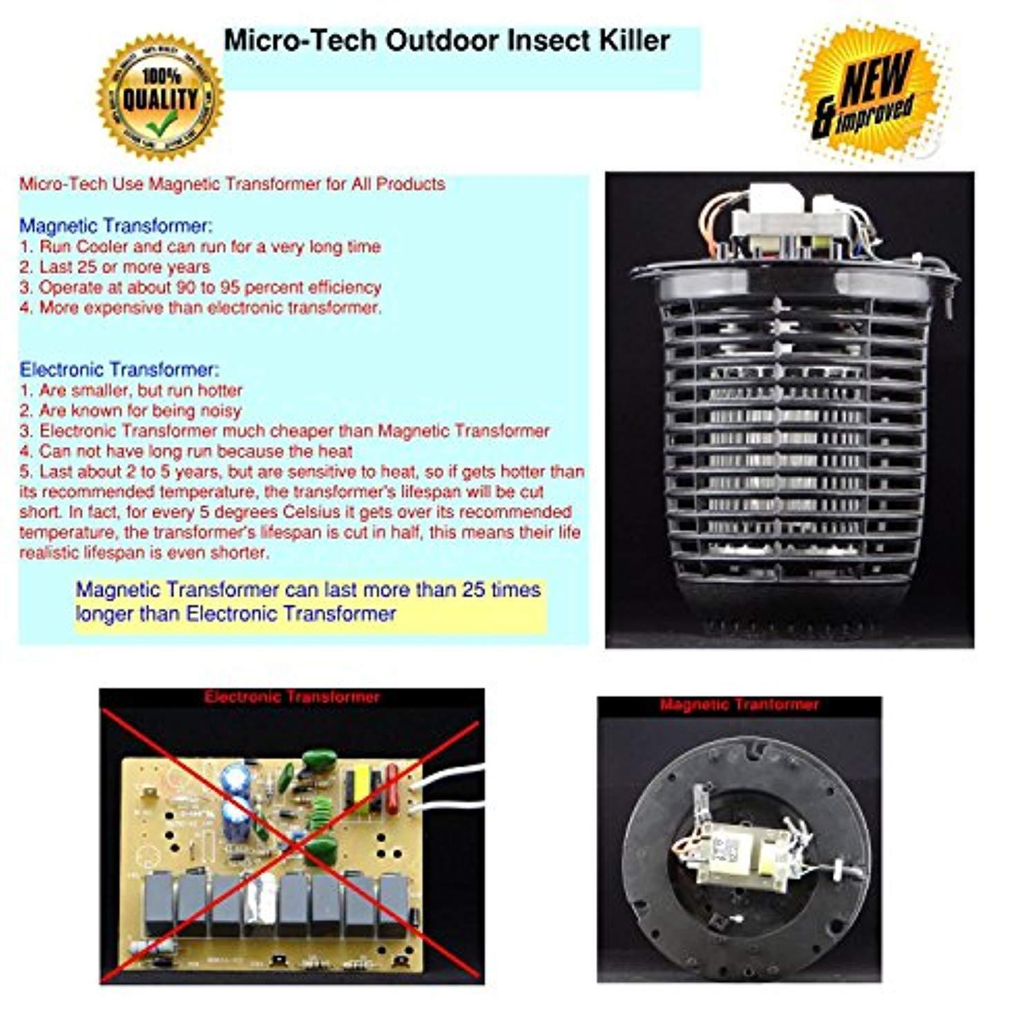 TEZA Products Use Magnetic Transformer for All Products Magnetic Transformer: 1. Run Cooler and can run for a very long time 2. Last 25 or more years 3. Operate at about 90 to 95 percent efficiency 4. More expensive than electronic transformer. Super Strong High Voltage 2500-4000 V to Zap Mosquitoes, Moths, Other Fliess Use for Indoor & Outdoor- Waterproof