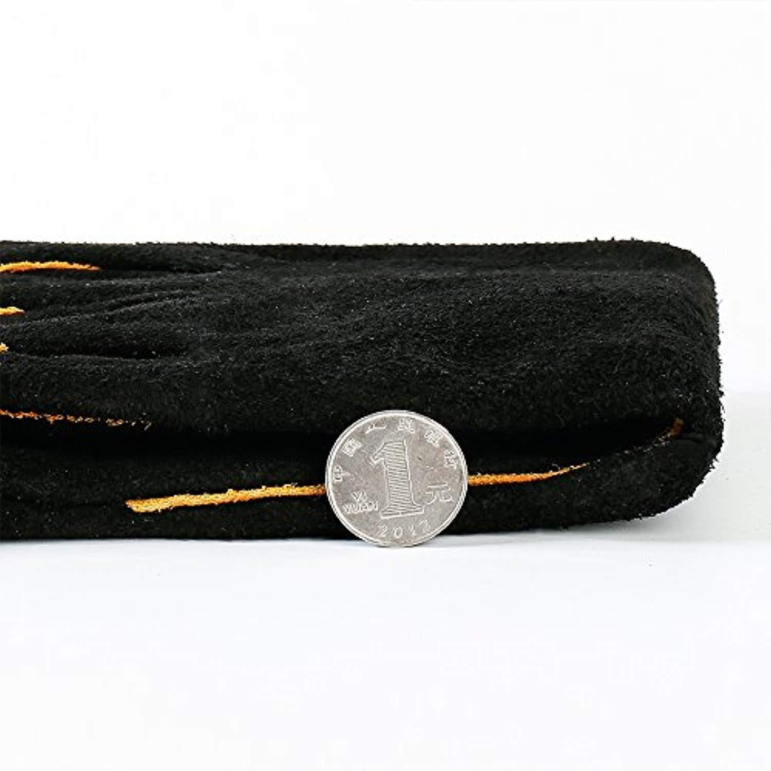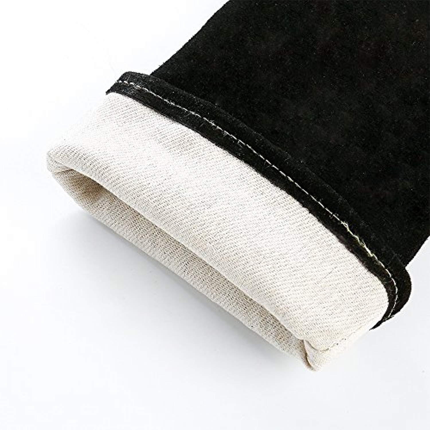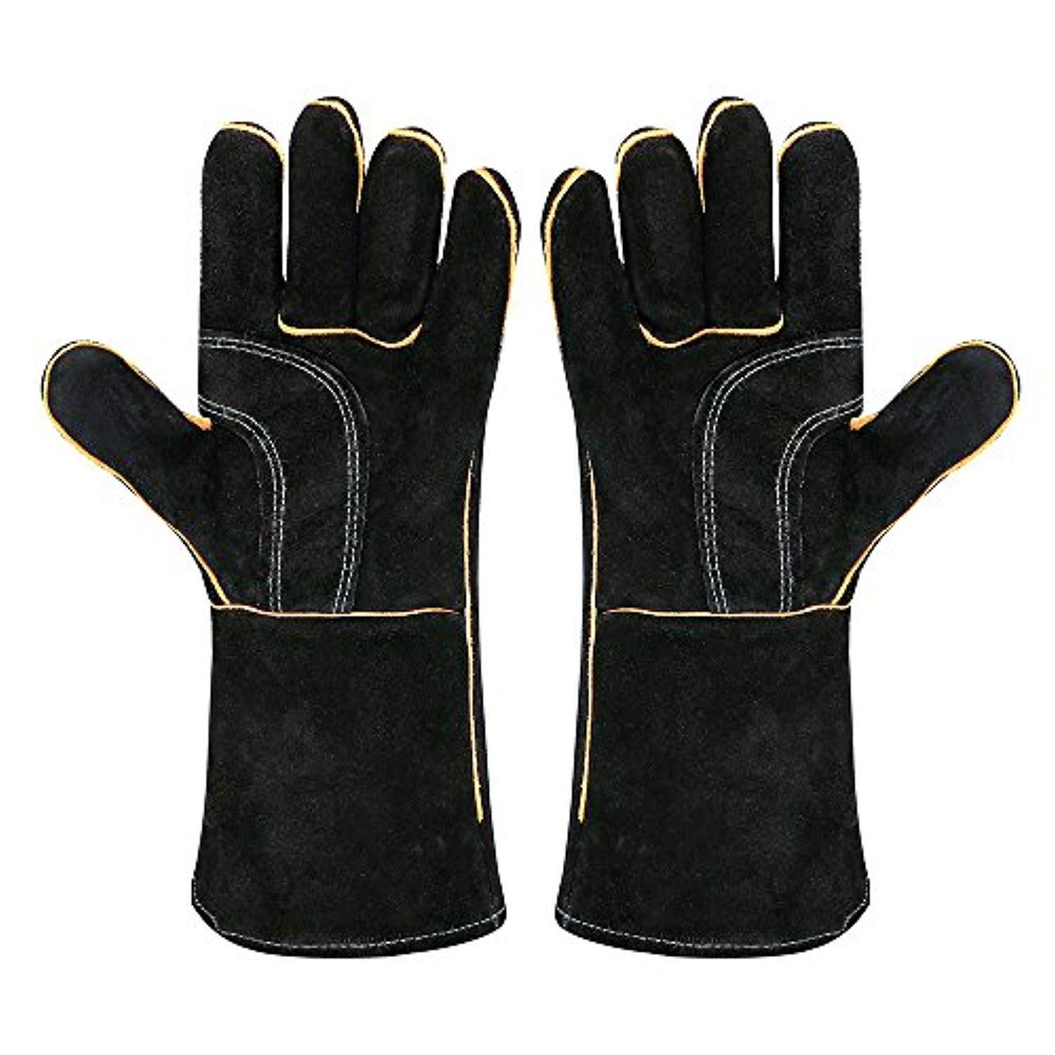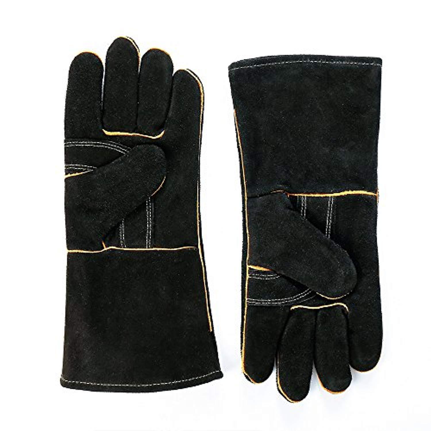 Leather Barbecue Gloves by LeaSeek - Heat Resistant & Flame Retardant Welding Gloves & Fireplace Gloves & Grill Gloves & BBQ Gloves, Heavy duty, Black - 14