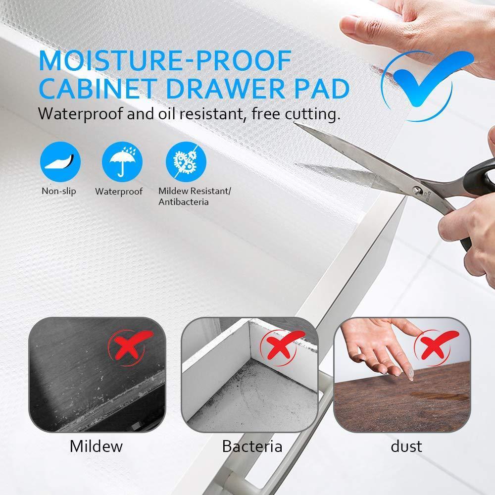 amorus 3 Rolls EVA Shelf Liners for Kitchen Cabinet Drawer Non-Adhesive Clear Refrigerator Liners for Shelves Washable Pad Mat, 17.7 x 59 inches - Transparent