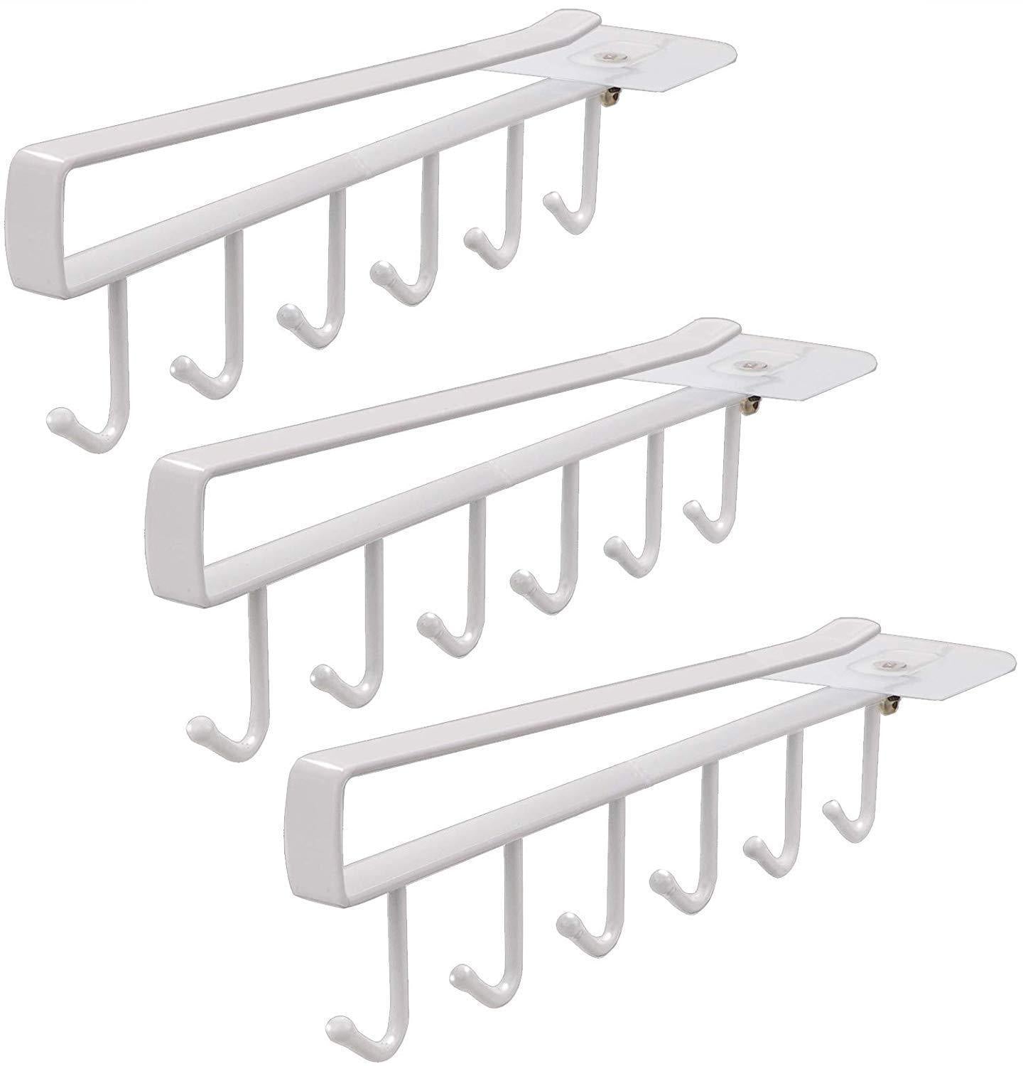 Art Secret Multi-Function 3pcs × 6 Hooks Mug Holder Under Cabinet Coffee Cup Hanger for Kitchen, Armoire and Any Thickness of 0.8 inch or Less Shelves