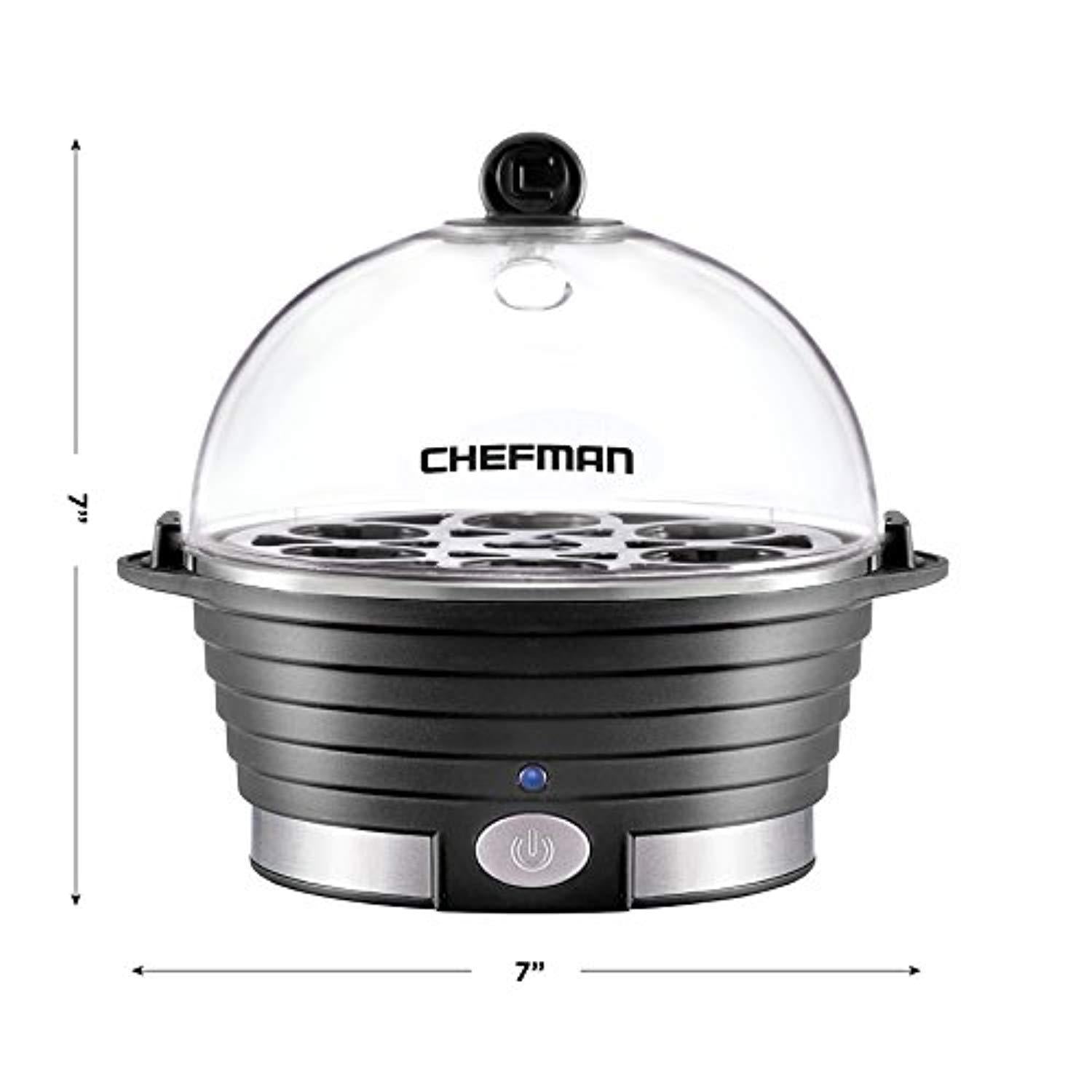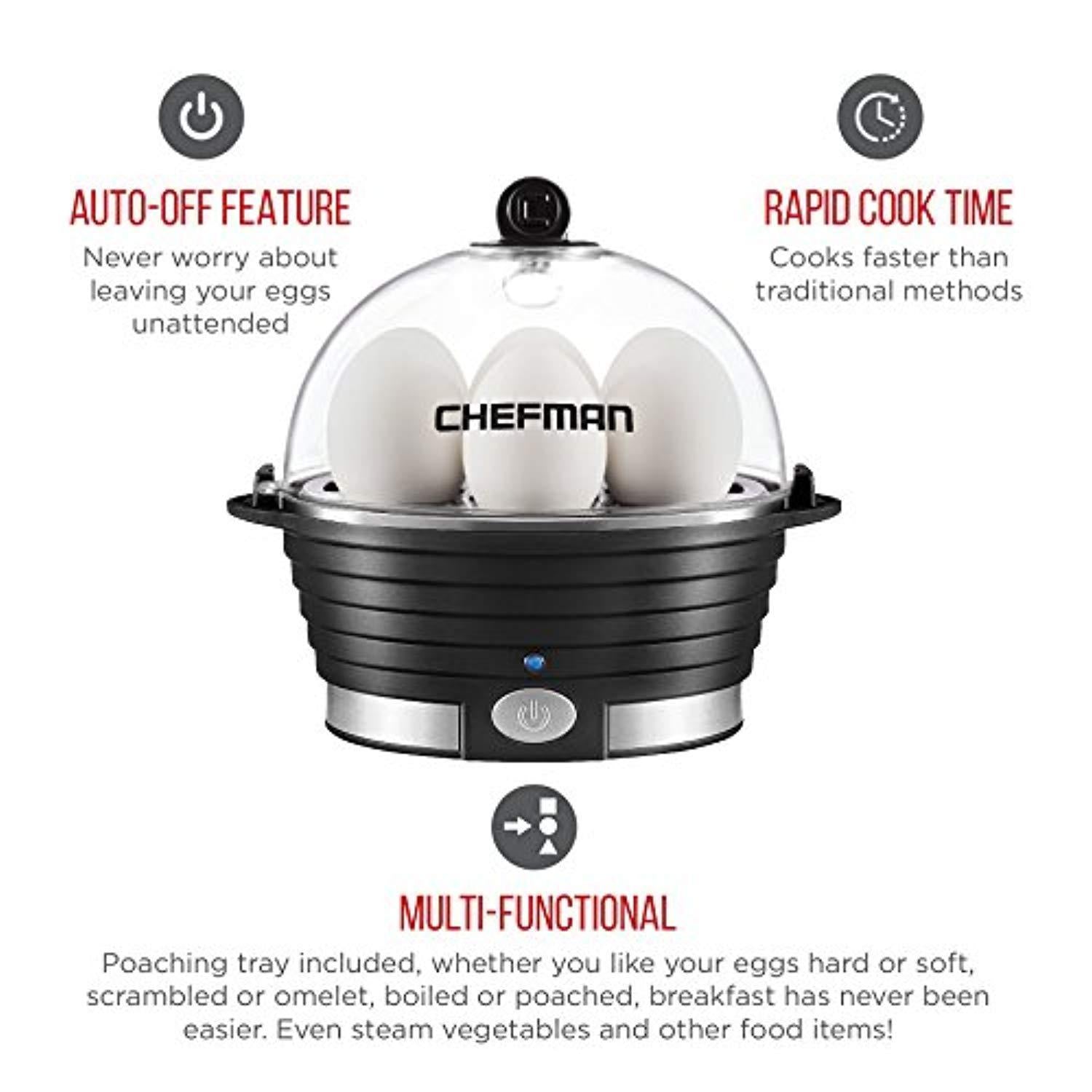 Chefman Electric Egg Cooker/Boiler, Rapid Egg Maker, Countertop, Hard Boil Egg Steamer and Poacher, 6 Egg Capacity With Removable Tray, Small, Black