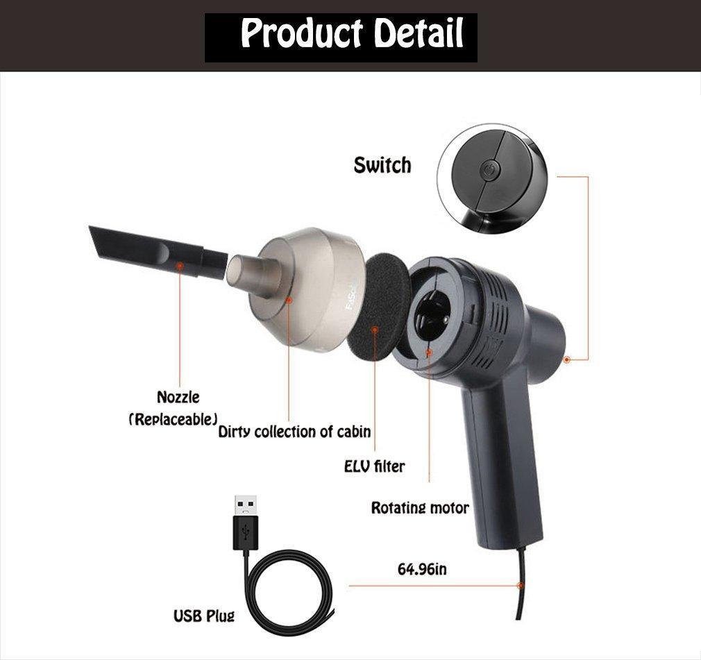 CRSURE USB Keyboard Vacuum,Mini Vacuum Cleaner with Two Replaced Nozzle for Cleaning Keyboard Dust,Bread Crumbs,Paper Scrap,Eraser Crumbs,Cigarette Ash,Makeup Bag,Car Device,Pet House