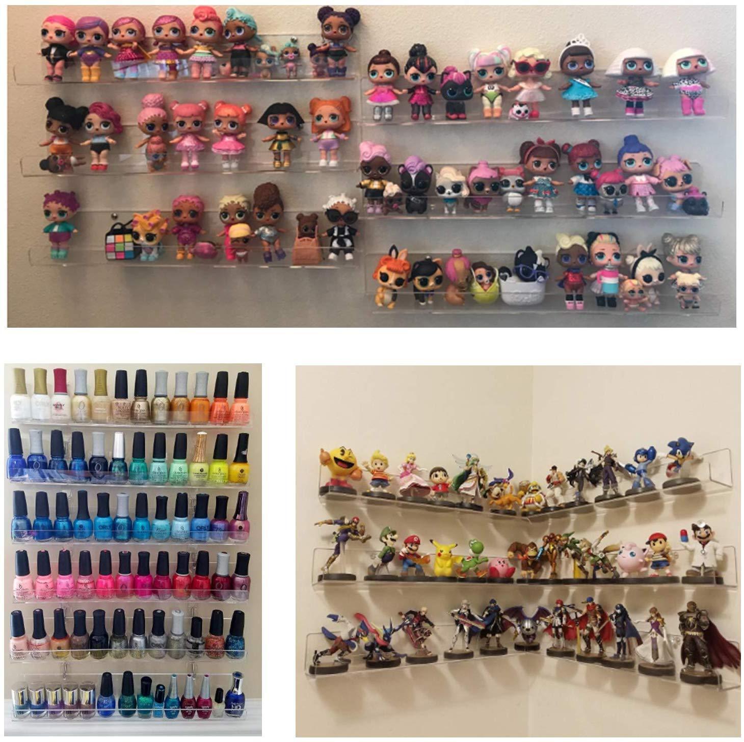 Display4top 6 Pack Of Clear Acrylic Nail Polish Rack, Kids Invisible Floating Bookshelf, Wall Mounted Display Organizer