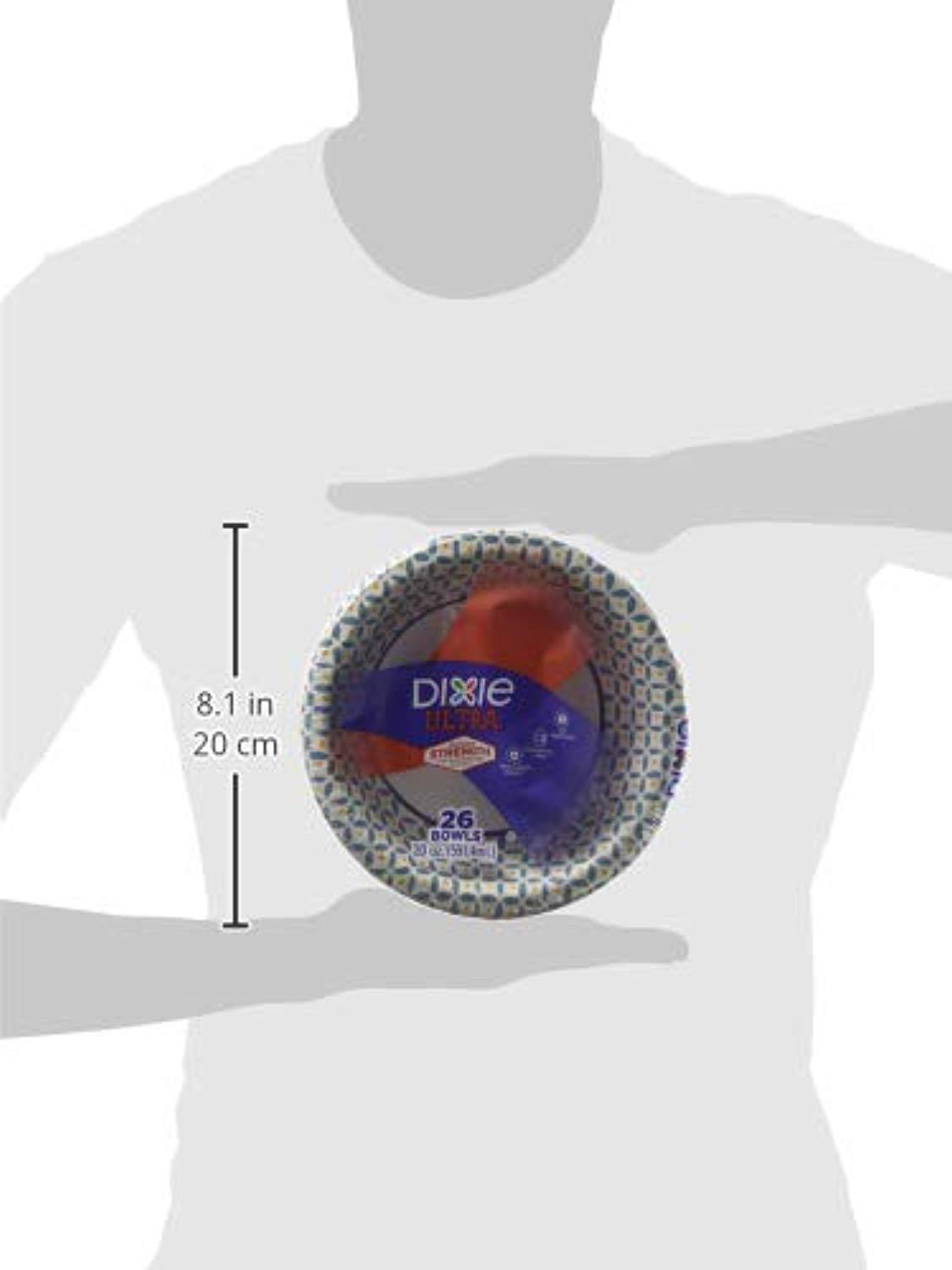Dixie Ultra Paper Bowls, 20 Oz, 156 Count, 6 Packs of 26 Bowls, Dinner or Lunch Size Printed Disposable Bowls