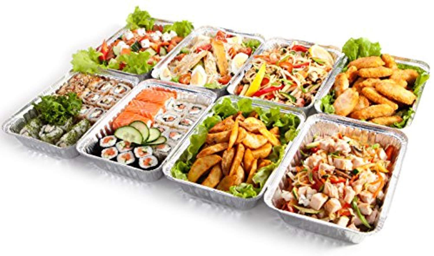 DOBI (50 Pack) 2.25lb Takeout Pans - Disposable Aluminum Foil Take-Out Containers with Lids, Standard Single-Portion-Size, 8 1/2" x 6" x 1 4/5"
