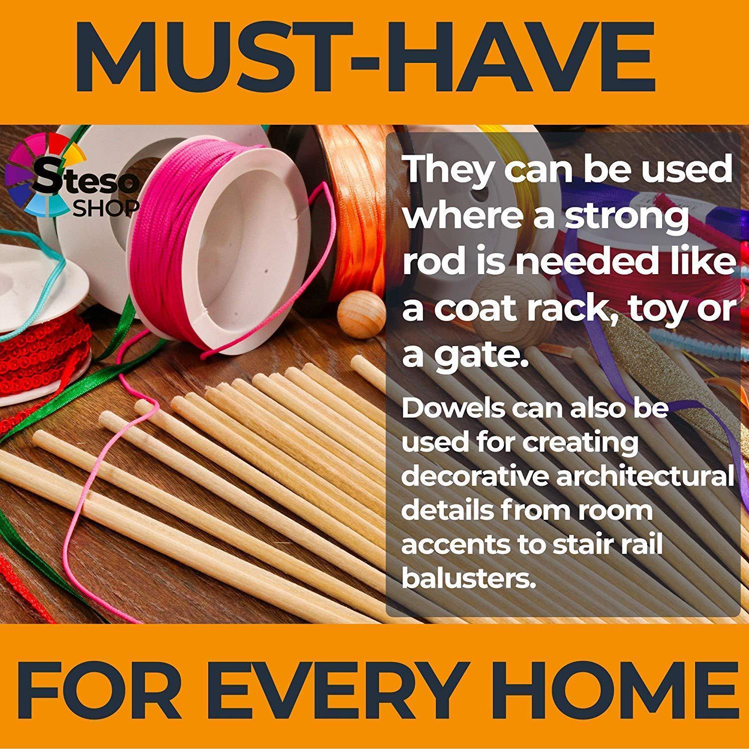 š The set includes 100 pcs Wooden Dowels for Craft. Size: Length 12inches - Diameter: 3/16 inch Dowel Rods. Made of high-quality natural wood.