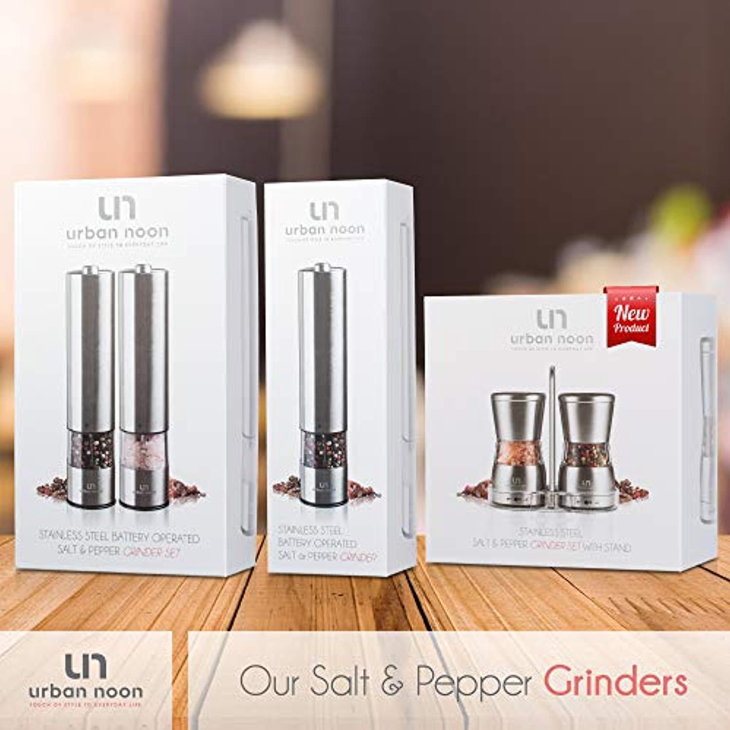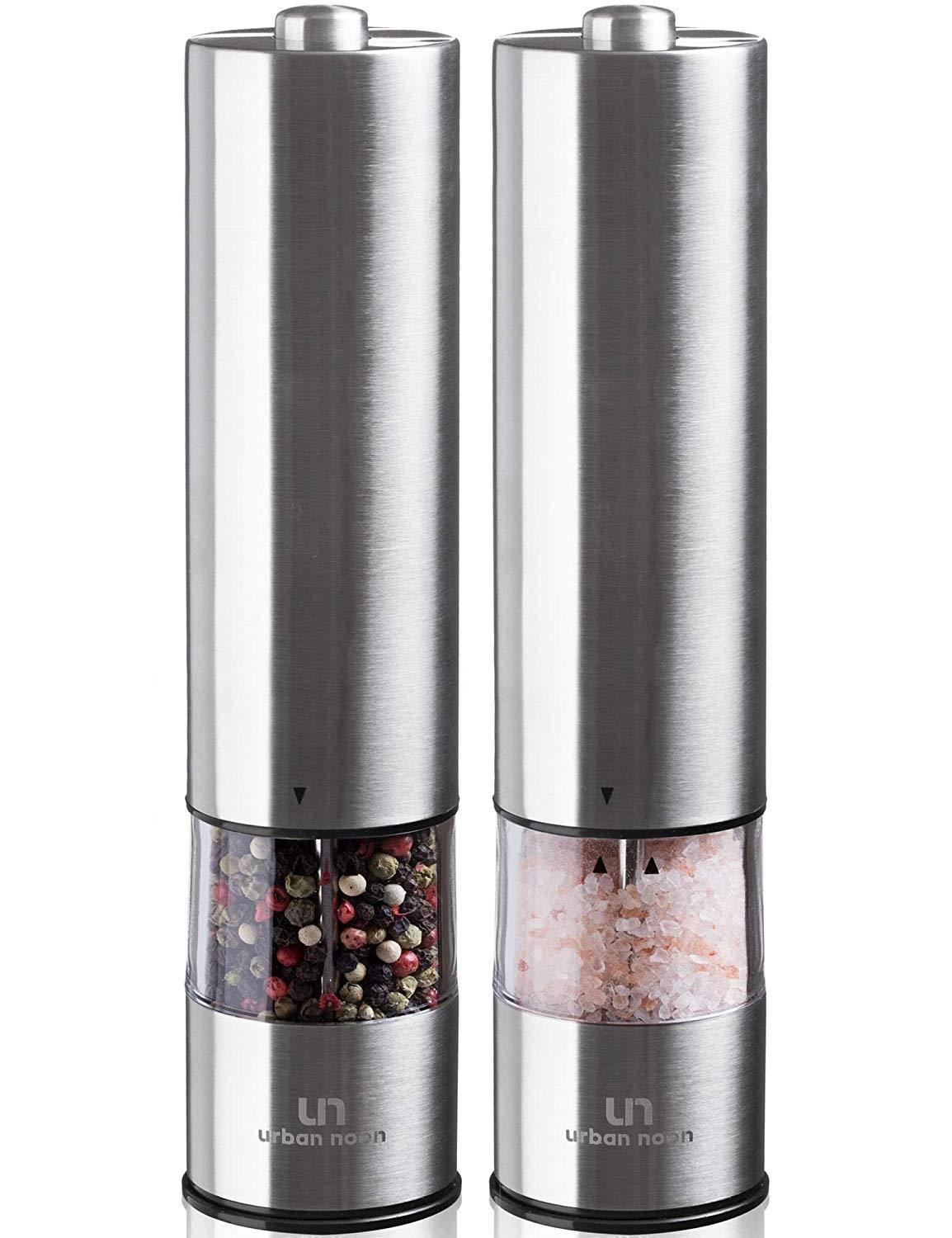 Electric Salt and Pepper Grinder Set - Battery Operated Stainless Steel Mill with Light (Pack of 2 Mills) - Electronic Adjustable Shakers - Ceramic Grinders - Automatic One Handed Operation