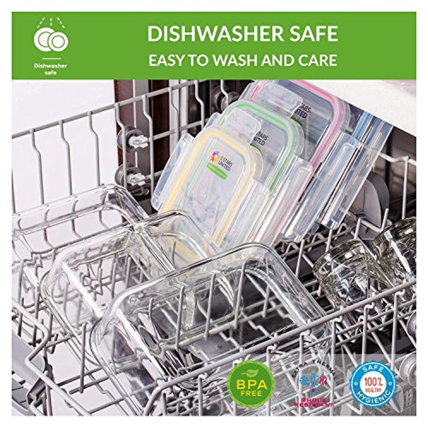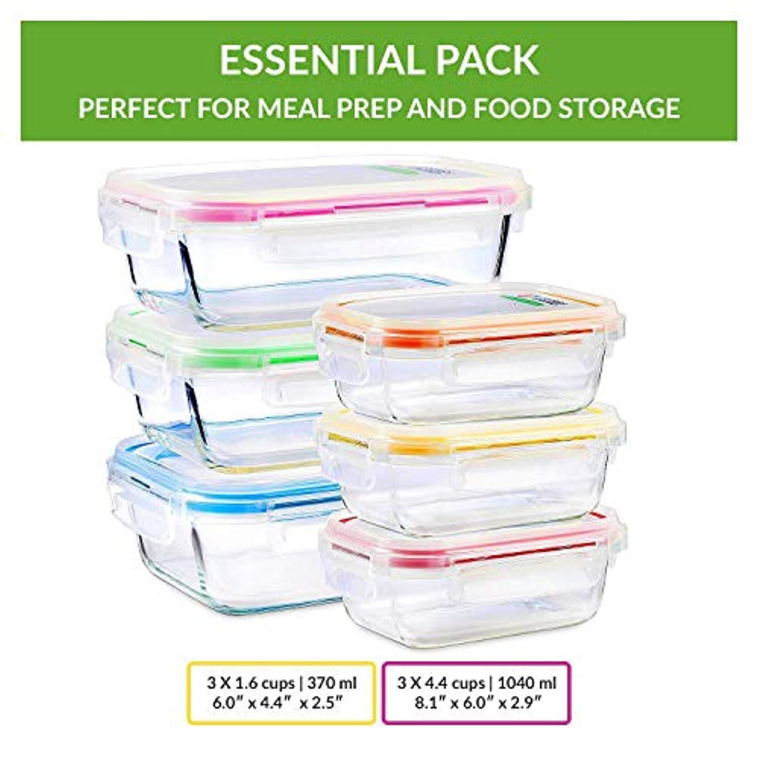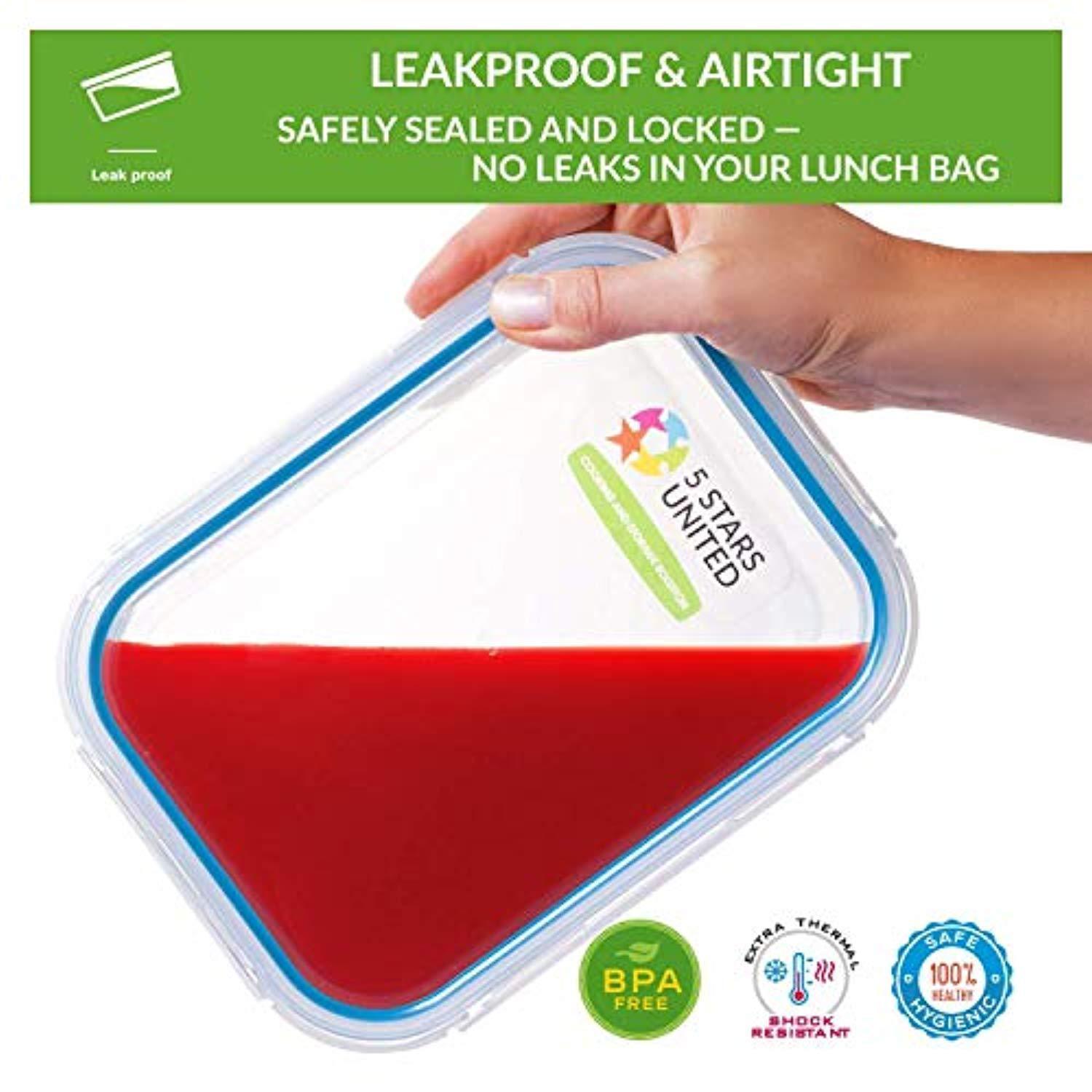BEST ESSENTIAL SET - The perfect set comes with three large 4.4-cup (35 Oz) and three small 1.6-cup (12 Oz) rectangular containers, all with matching lids. The containers also nest inside one another when not in use, making them easy to store efficiently. HIGH QUALITY - The containers themselves are BPA-free, recyclable glass is made from natural components. Each plastic lid has a rubber gasket and four latches, which makes them completely airtight and securely fastened for optimal food freshness and protection against leaks. Healthier alternative to plastic tupperware. VERSATILE - Each glass block is made from borosilicate glass, making it oven safe, as well as dishwasher, microwave and freezer safe. The tempered glass containers are also resistant to thermal shock. They can handle sudden temperature changes of more than 200°F (95°C) without breakage. Go from freezer to oven, and stay shatter-proof. CAUTION! Do not put plastic lids in the oven, microwave, dishwasher! FITS EVERY NEED - You can use this six-piece kitchen set for storing, freezing, reheating, baking and serving. It suits for homemade baby food, for last night's leftovers, for taking lunch on the go and packing snacks, tiffins. 100% MONEY-BACK SATISFACTION GUARANTEE - 5 STARS UNITED wants you to be absolutely happy with your purchase! If our product does not work for you for any reason, return it for a full refund. You will get 100% money back with no questions asked. You take NO RISK by ordering today!