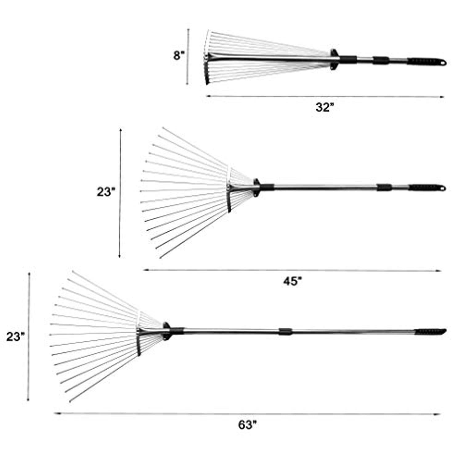 gonicc 63 inch Professional Adjustable Garden Leaf Rake, Expanding Metal Rake - Adjustable Folding Head from 7 Inch to 22 Inch. Collect Leaf Among Delicate Plants,Lawns and Yards. Ideal Camp Rake.