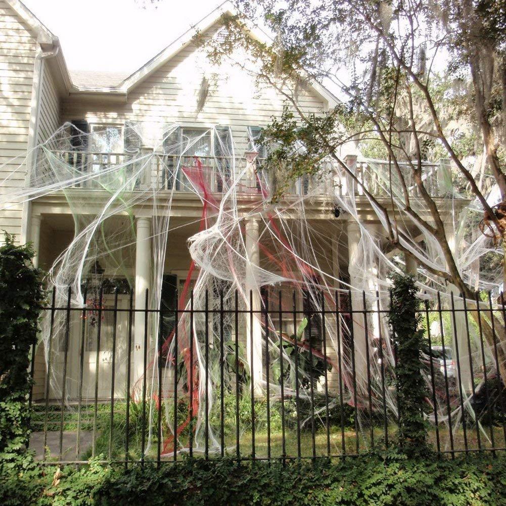Fake Spider webs must be one of the simple Halloween Props to add Halloween spookiness to your house or party. It also can be used for Bars and other Costume Parties. Made of 80 grams of artificial cotton, hand-knotted & durable, easy to stretch and attach on objects anywhere you like. Ultra-stretchable Spider Web is enough to cover 250 sq.ft. indoor & outdoor. Easy to cover windows, walls and furniture etc. Each pack includes 25 extra spooky spiders to add Halloween atmosphere. HAPPY HALLOWEEN! If there is any dissatisfaction, please contact us for a replacement or full refund.