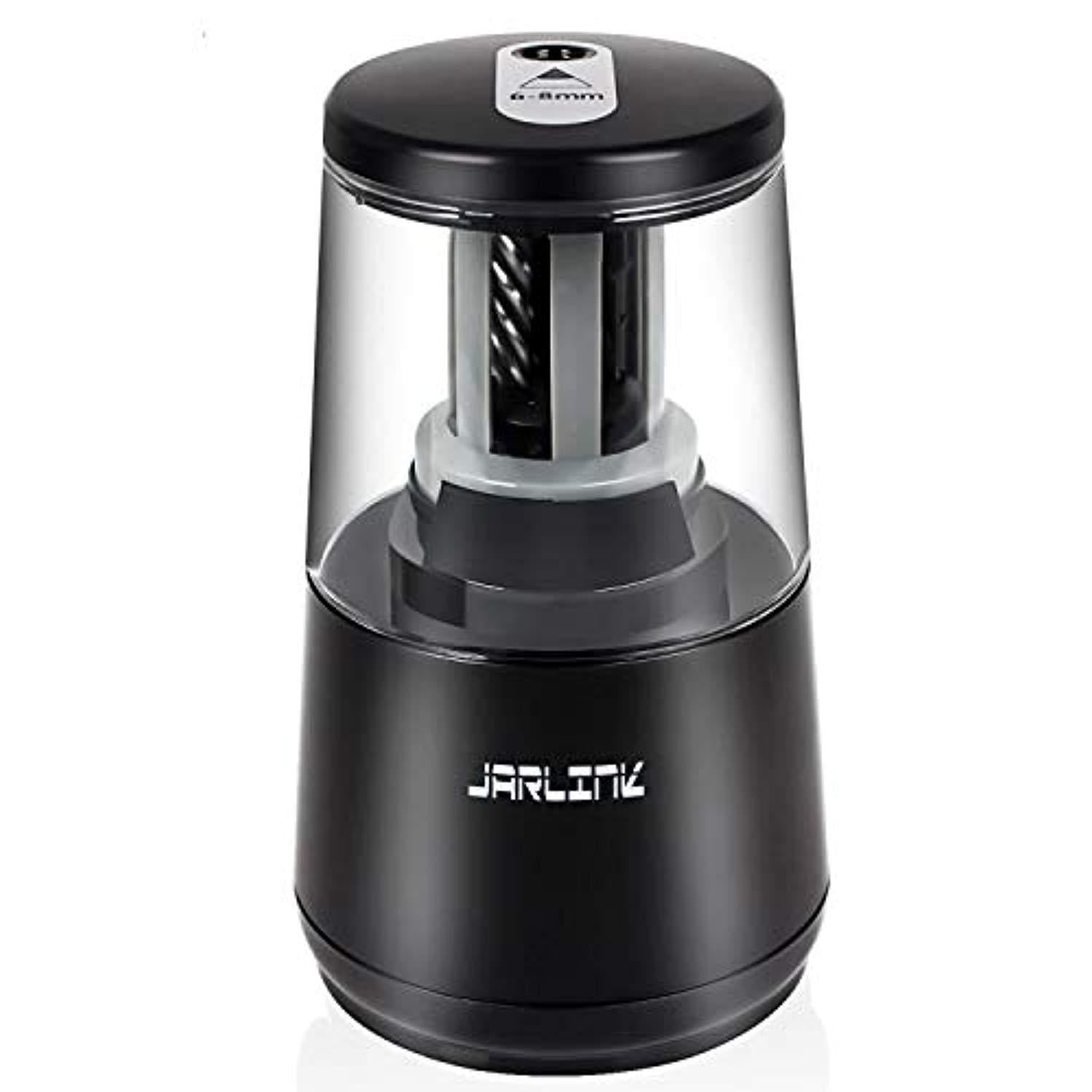 【Powerful Motor】With heavy-duty and durable helical blade, fast sharpening for 5-10 seconds and auto-stop working at a perfect point to protect pencil lead and dispose of the broken lead intelligently. Fit for sharpening #2 pencils, colored pencils, charcoal pencils, etc. 【Auto & Safety Features】 Automatically work when plugging the pencil into the shaving entrance. Auto-stop working if finished or the lid is opened. 8mm diameters shaving entrance could prevent kids' fingers from entering to avoid hurting.