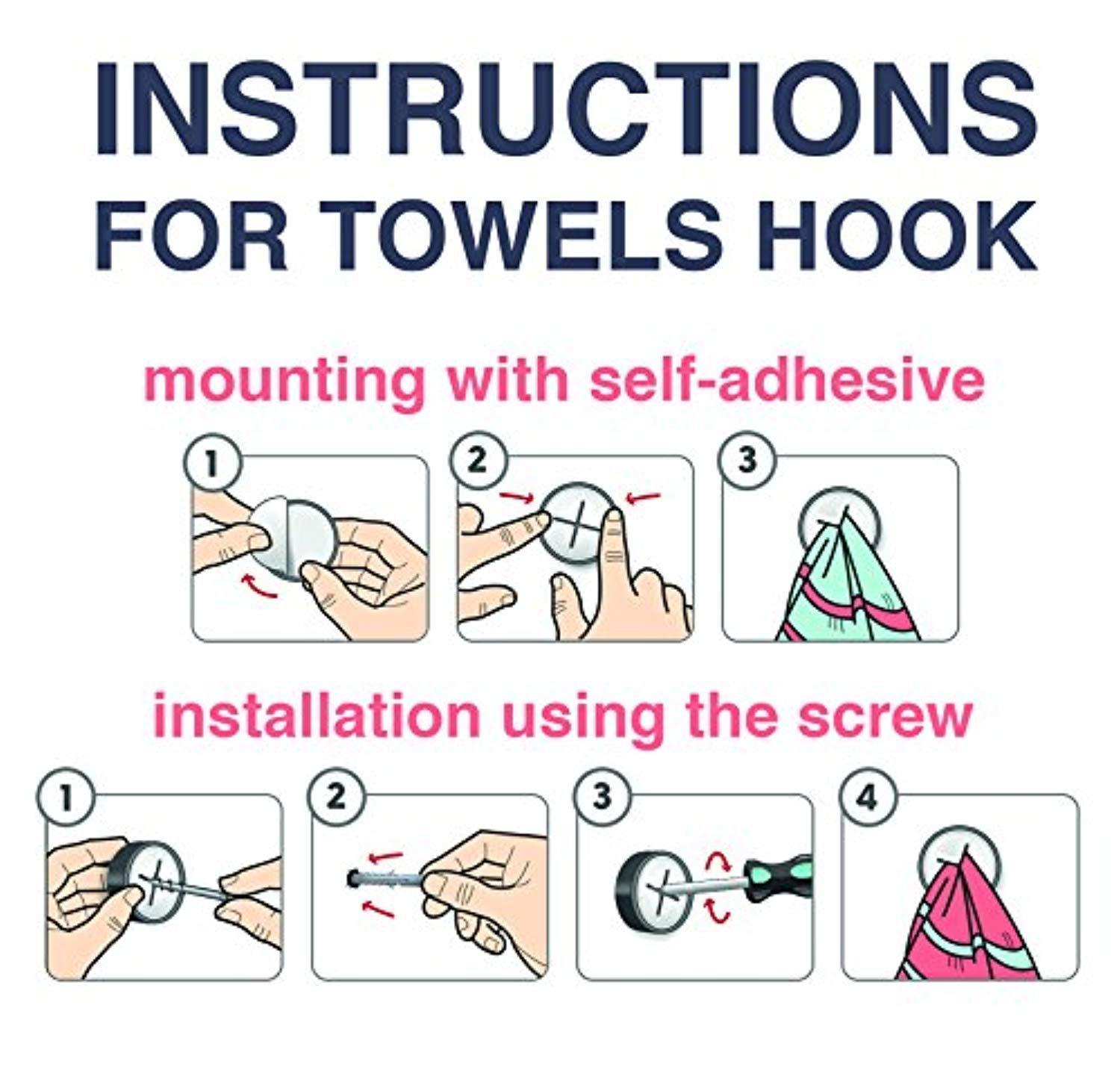 Kitchen Towel Hooks – Set of 2 Self Adhesive Towel Hook – Premium Chrome Finish & Easy Installation – Firmly Holds Towel without Tearing – Ideal as Bath, Bathroom, Shower or Outdoor Towel holders