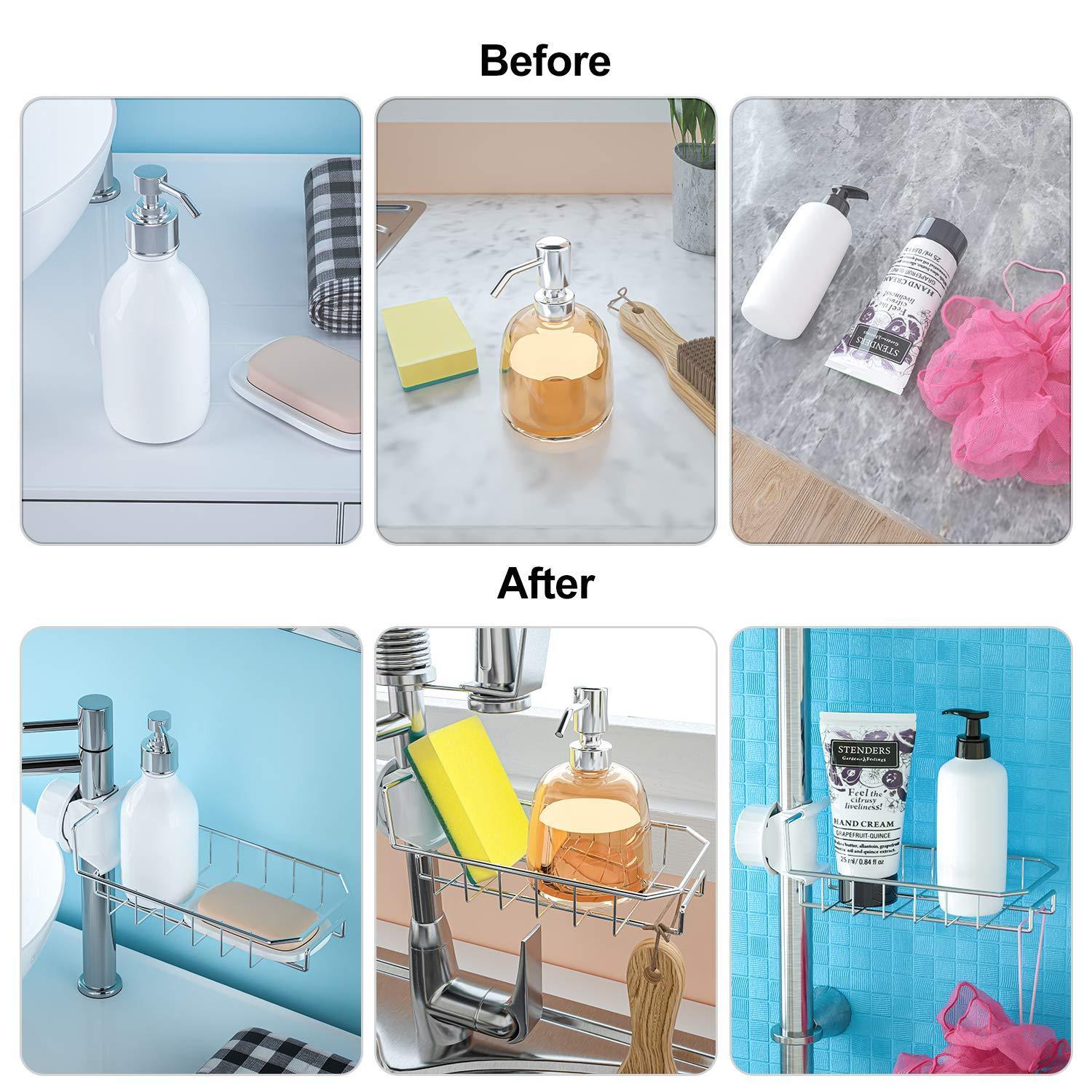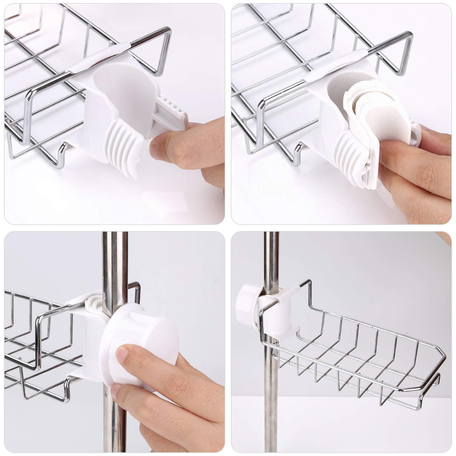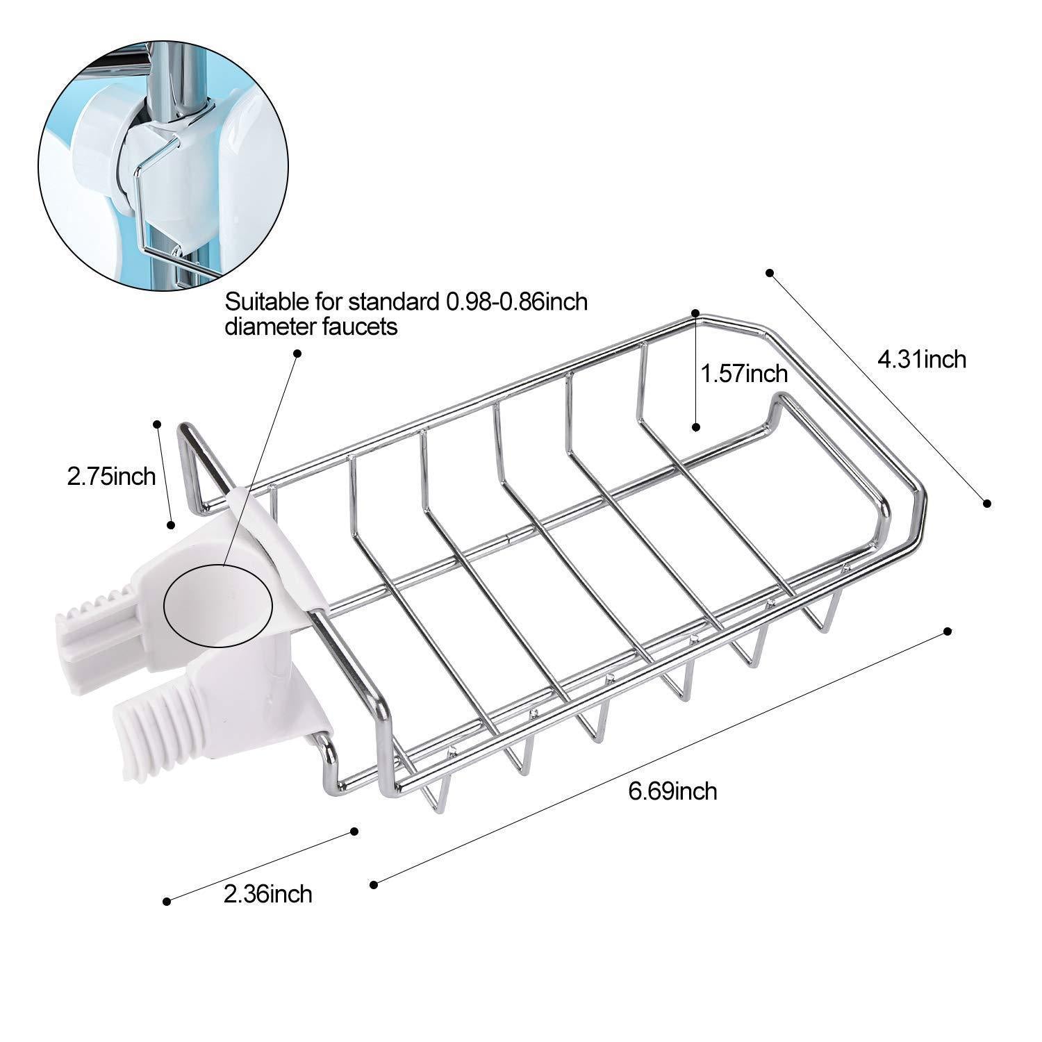 LEEFE 2Pcs Kitchen Faucet Sponge Holder, Stainless Steel Storage Rack Hanging Sink Caddy Organizer for Scrubbers, Soap, Bathroom | Detachable No Suction Cup or Magnet No Drilling