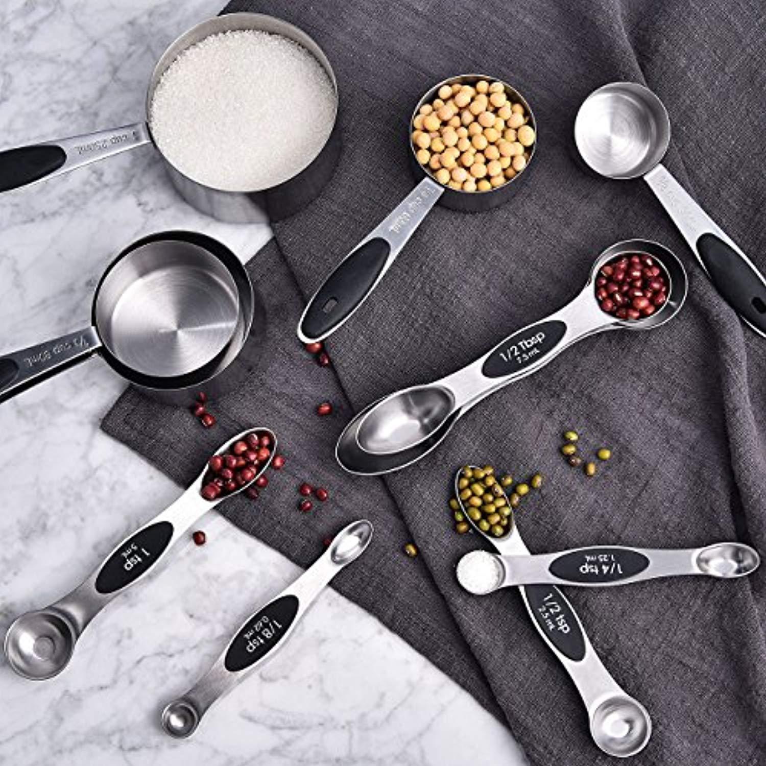 Magnetic Measuring Spoons and Stainless Steel Measuring Cups Set of 11, 5 Measuring Cups & 6 Double Sided Stackable Magnetic Measuring, Measuring Dry and Liquid Ingredients.