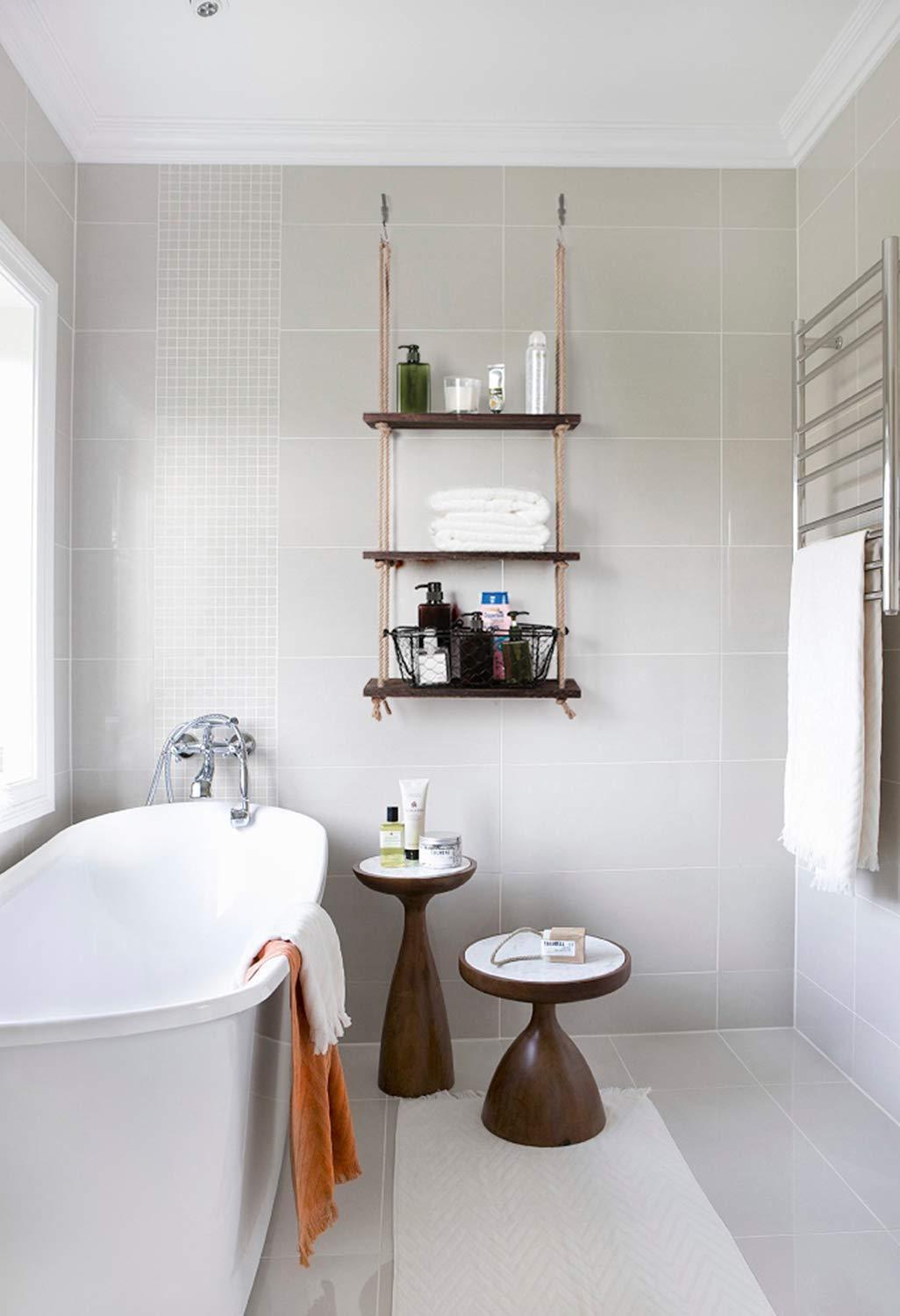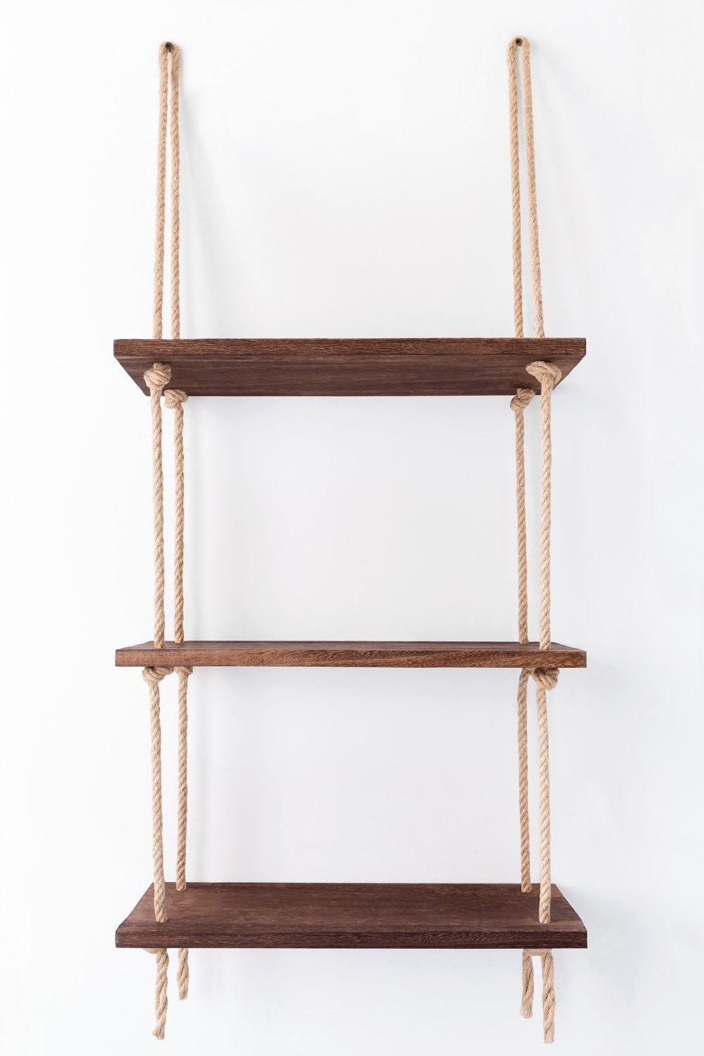 Mkono Wood Hanging Shelf Wall Swing Storage Shelves Jute Rope Organizer Rack, 3 Tier