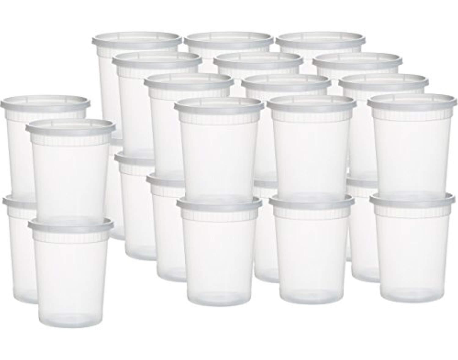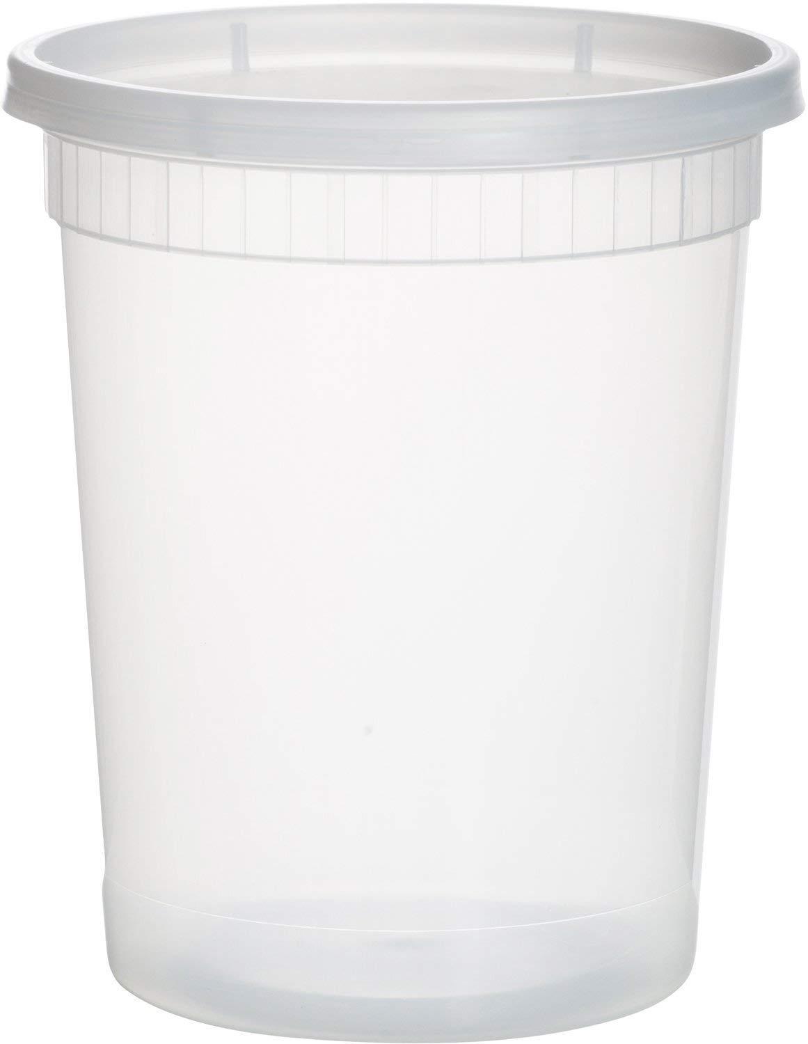 This 24 pack of 32 oz round translucent Large plastic containers have easy to seal lids that are ideal for homes, delis and restaurants.