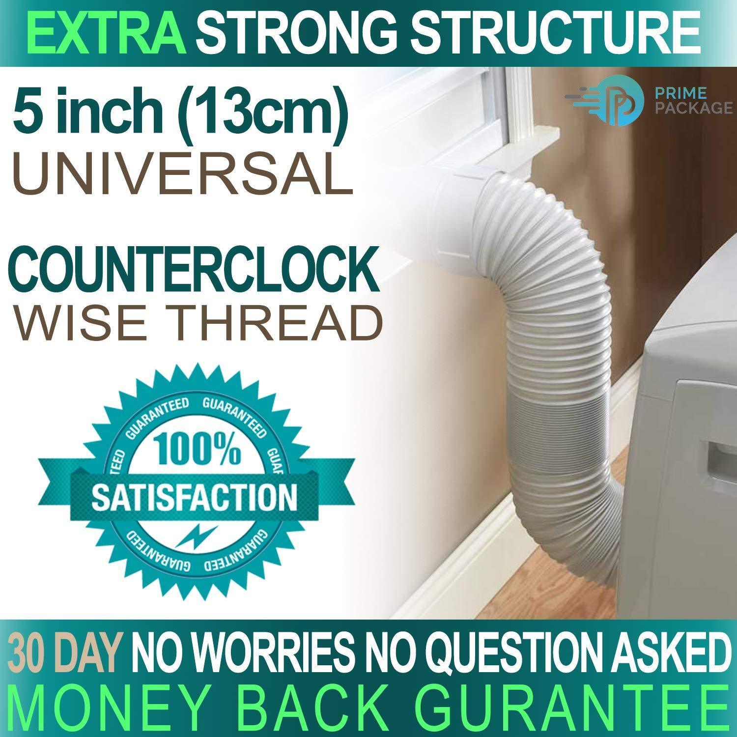 Portable Air Conditioner Exhaust Hose (78" Long) 5 Inch Diameter, Counter-Clockwise Threads | AC Conditioning Unit Tubing | Flexible, Extendable Design | White