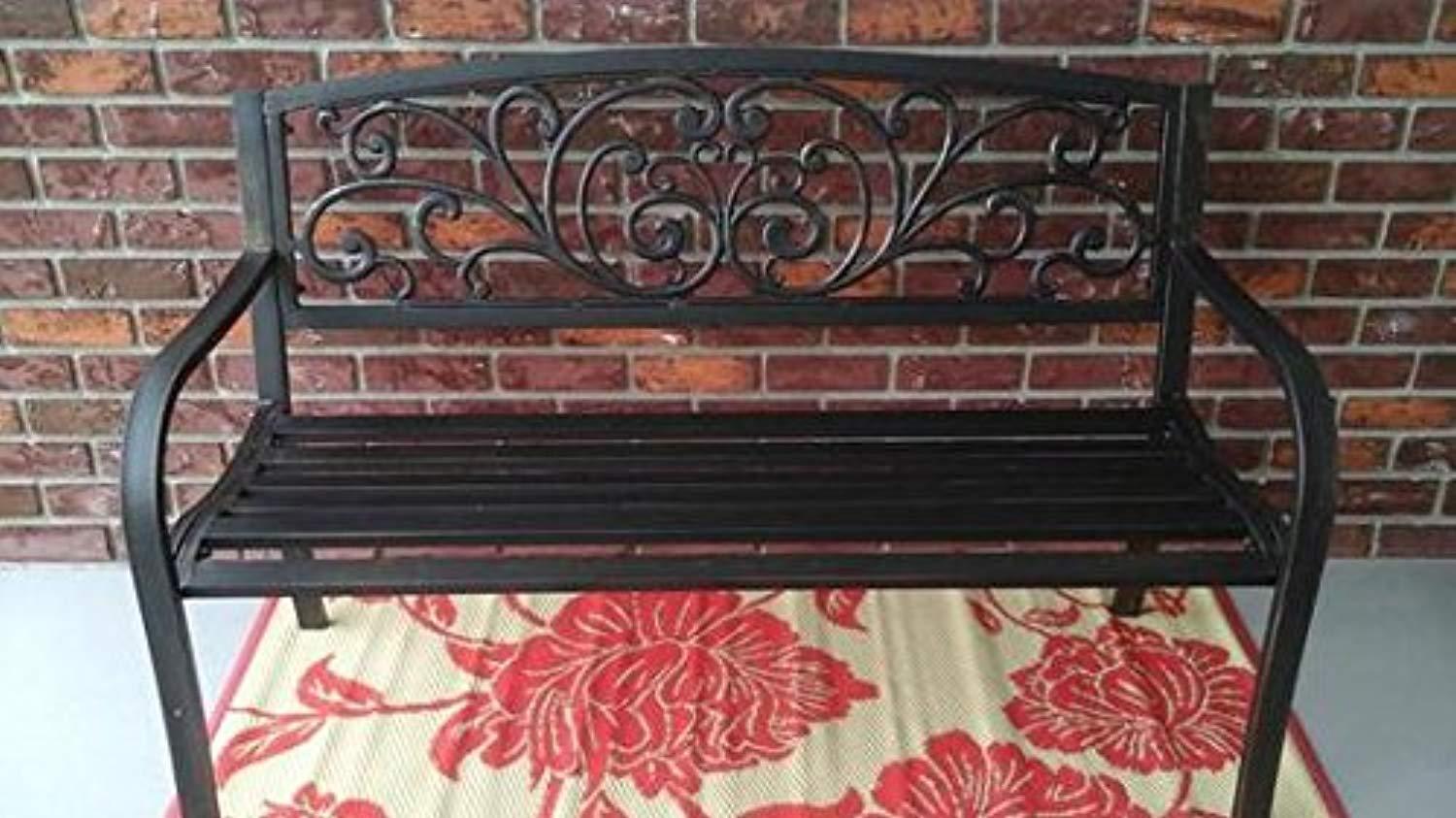 Powder Coated 33.5 x 24 x 50.5-Inch Cast Iron Outdoor Patio Bench with Ivy Design Backrest, Black