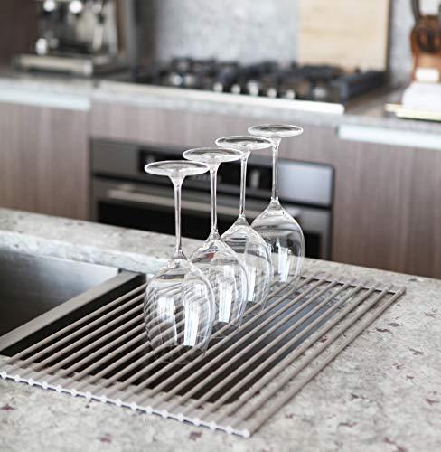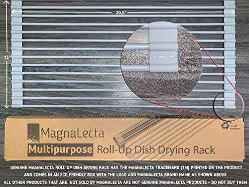 THE ULTIMATE SPACE SAVER – NECESSITY FOR EVERY HOME - Ever Felt Like There Is Not Enough Space Around the Kitchen? Then this is the perfect product to help you better organize the countertop space around the sink; Our specially crafted Over-Sink Rollable Drain Mat with self draining non-slip silicone will do just that; MULTIPURPOSE – Definitely the most all-purpose rack ever invented; From the most obvious usage to air dry dishes over-the-sink, to using it as a hot dish mat, our drainboard holder can also be used as a drainer for utensil, cutlery, glass, glassware, cookware, fruit and vegetable colander, pot and pan cooling, meat and food storage tray; Besides in the home, it can have commercial use, such as a restaurant, camping, RV etc; Or if you need more you can get our new 2pack multi unit. PERFECT SIZE AND SHAPE THAT FITS ALMOST ALL SINKS AND IT IS EASILY ADJUSTABLE – We specifically designed our foldable racks with all the different sink sizes in mind; Even Though It Comes in one size – 20.5 in x 13 in x 0.25 in (52 cm x 32 cm x 0.6 cm) it can easily be adjusted to a smaller sink by simply cutting off the silicone as shown in the photos and removing few extra bars and you can make 2 smaller mats out of 1; Color GRAY and It comes in an ECO FRIENDLY packaging;Takes No Storage Space HEAT AND OIL RESISTANT FOR EXTREME DURABILITY - Heat Resistant up to 400ºF (~205ºC) Dishwasher Safe, Made of High-End Premium Quality FDA and LFGB Approved, BPA Free Food Grade Silicone Coated Stainless Steel with an Elegant Modern Design; It will stand the weight of up to 90 lbs; UNBEATABLE OFFER - 100% SATISFACTION GUARANTEE - Our Roll Up Dish Drying Rack comes with manufacturer 30-day money back guarantee and 1 year free replacement policy; Simply love it or get your money back; We stand behind the quality of our Collapsible In-Sink Roll-Up Dish Dryer and in case of an issue where the roll-up-drying-rack arrives damaged or brakes due to no fault of your own, we will replace it 100% free. Pending trademark