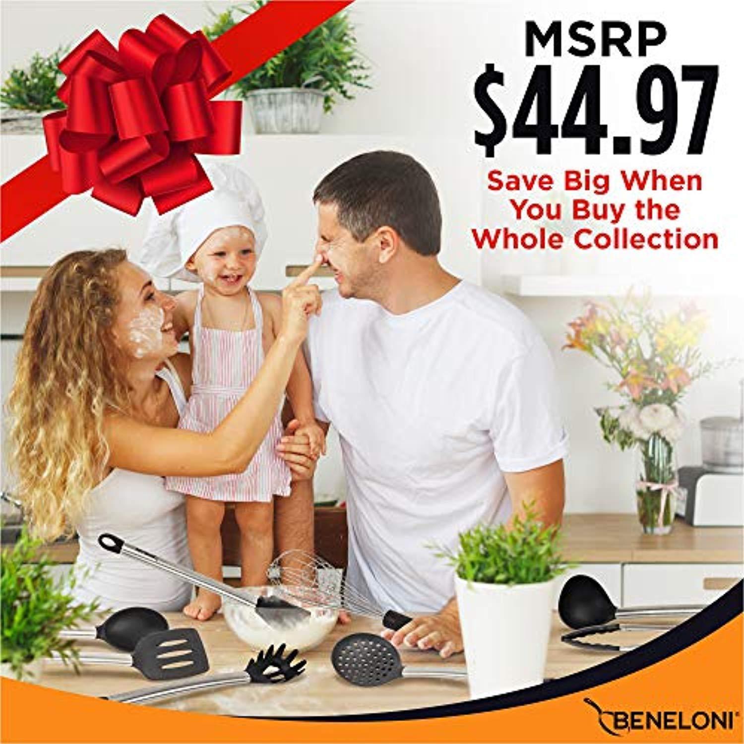 Silicone Kitchen Serving Utensil Set - Stainless Steel Metal and Black Utensils Including Tongs Spoons Spatula Ladle Whisk and Frosting Spatula Professional Nonstick Safe Modern Cooking Tools
