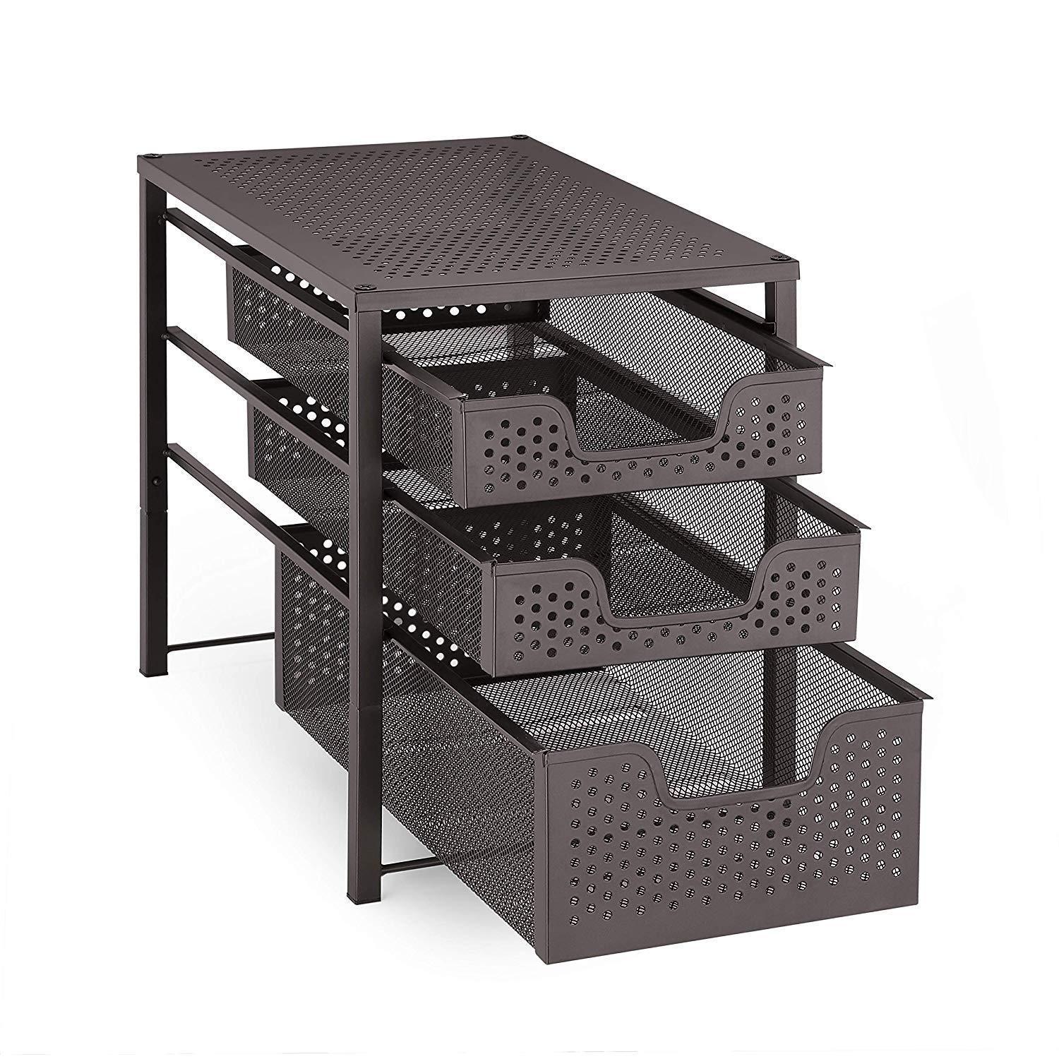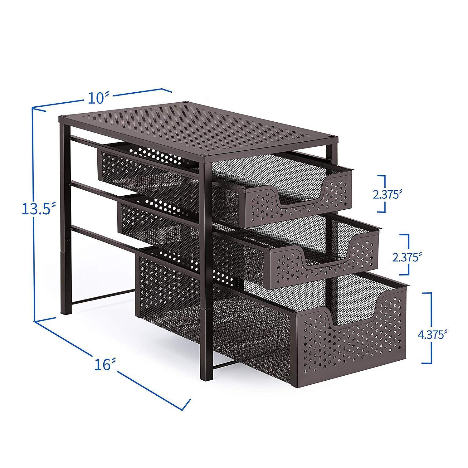 Simple Trending 3-Tier Under Sink Cabinet Organizer with Sliding Storage Drawer, Desktop Organizer for Kitchen Bathroom Office, Stackbale, Bronze