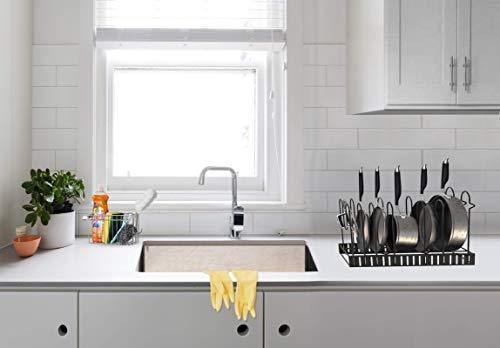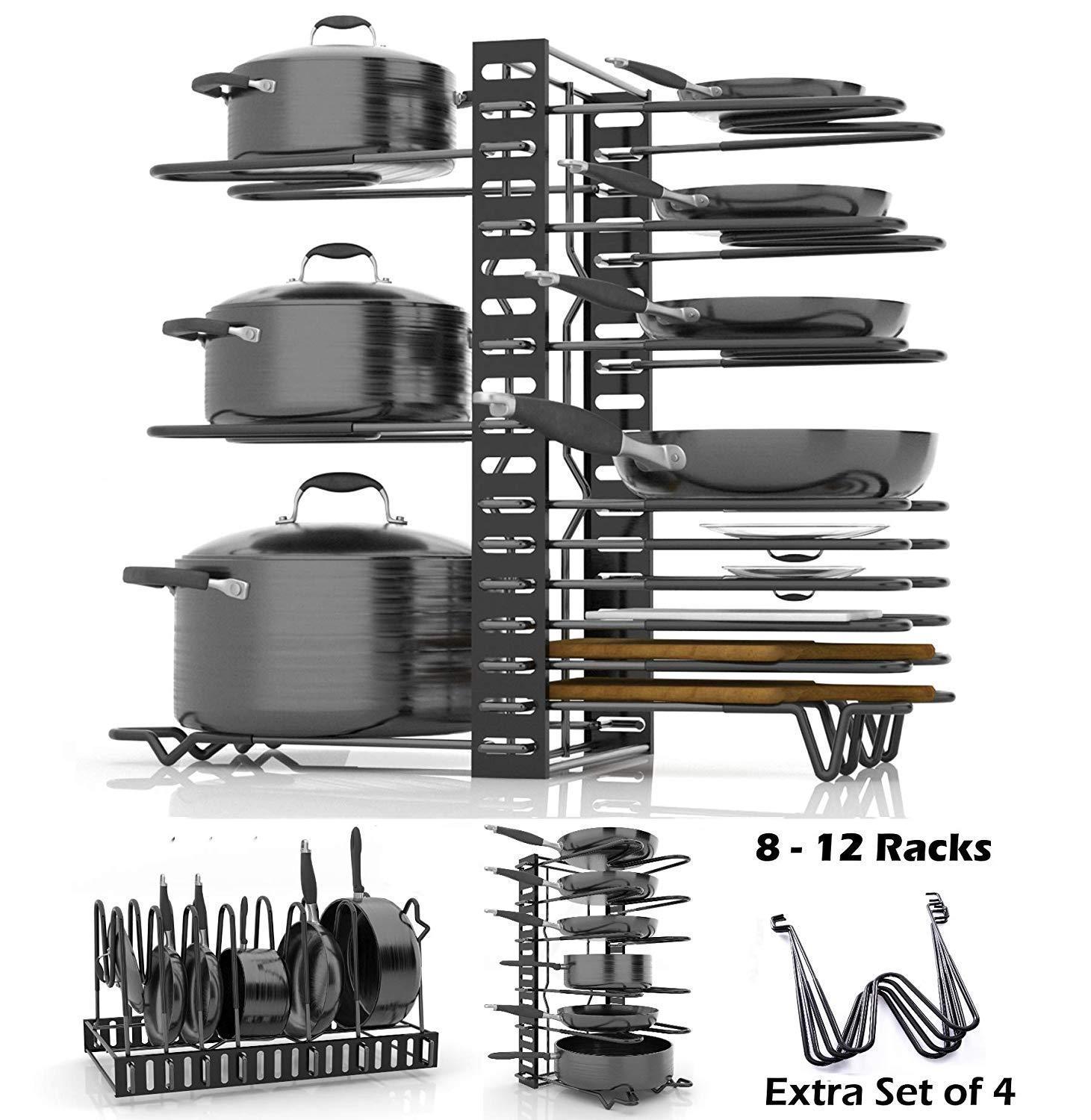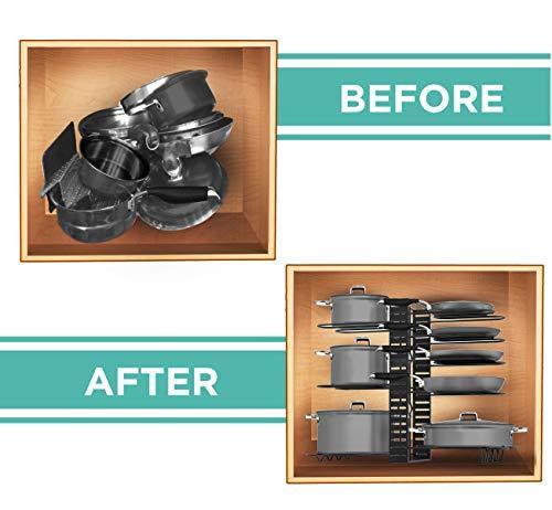 SKATCO Pot Organizer Rack – Metal Pots & Pans Organizer – Pantry & Kitchen Cabinet Organizer – Heavy Duty Lids, Dishes, Pots and Pans Organizer – Horizontal & Vertical Pan Rack with 3 Use Methods