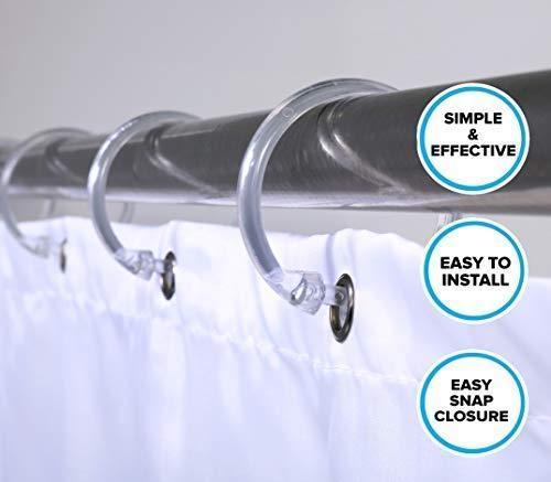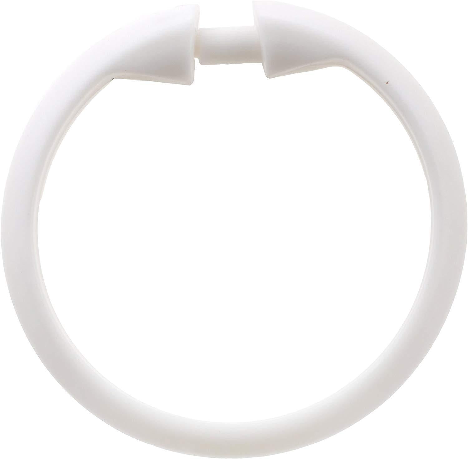 SlipX Solutions White Premium Plastic Shower Rings Provide Effortless Gliding on Standard Shower Rods (Set of 12, Easy Snap Closure, BPA-Free Plastic)