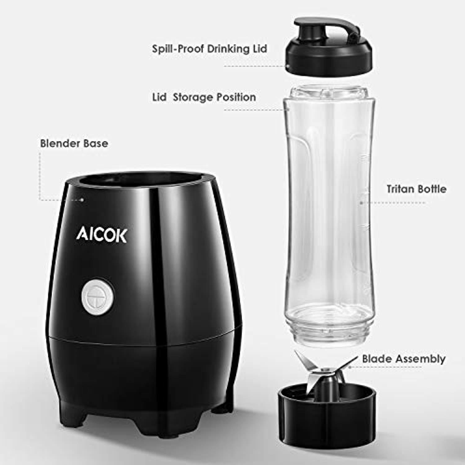 Smoothie Blender AICOK Personal Blenders Single Serve for Shakes and Smoothies with 20 oz Tritan BPA-Free Bottle, Detachable Blade Assembly, 300W, Black