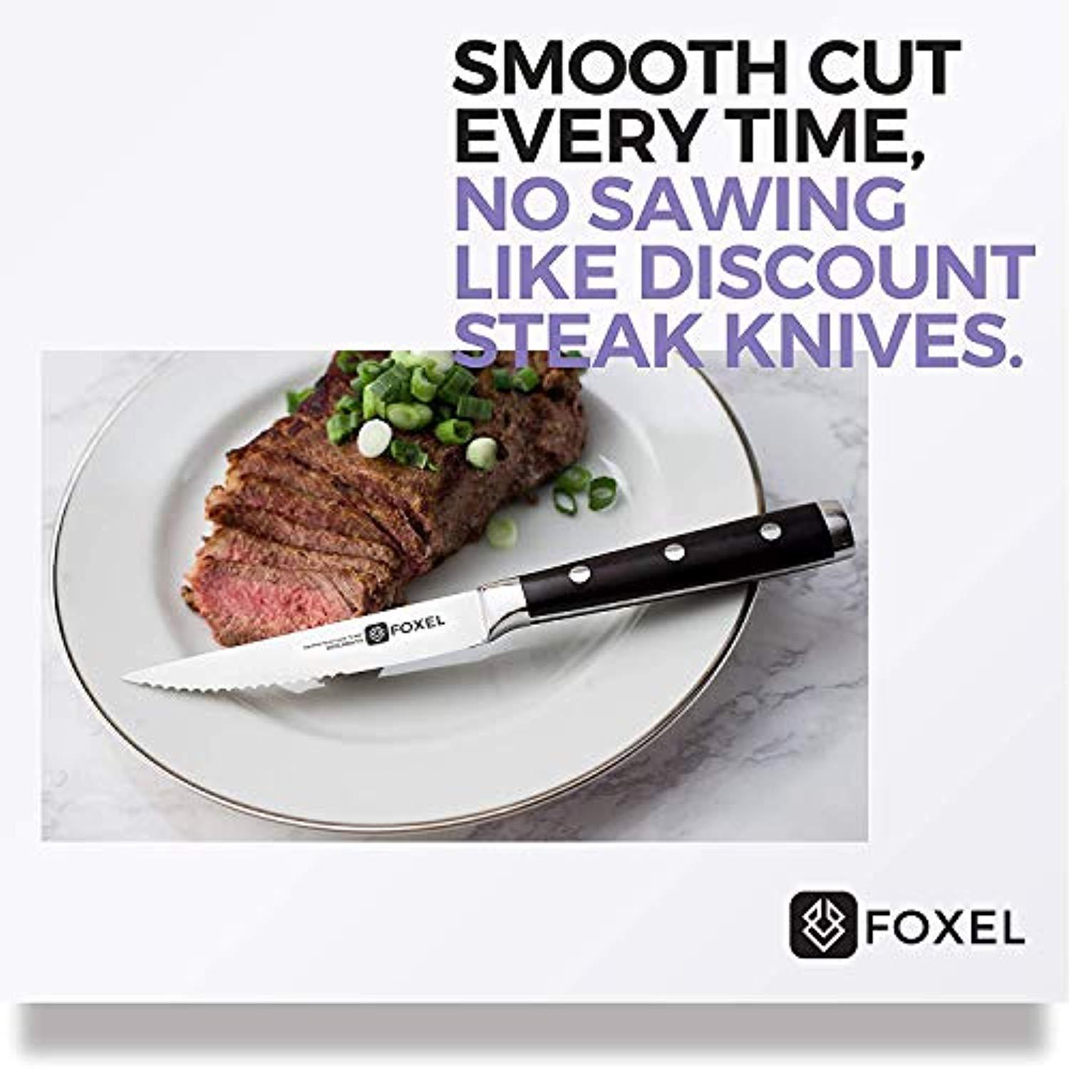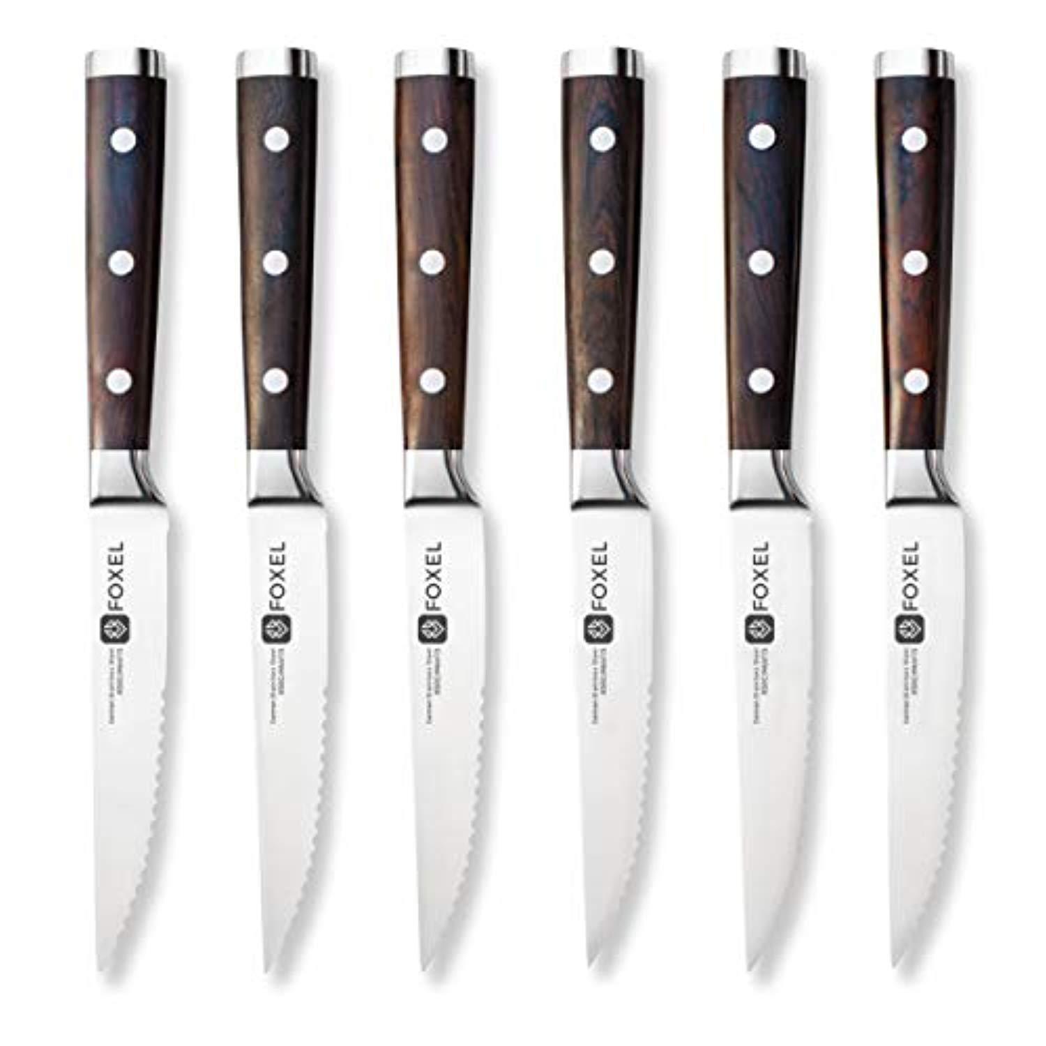 Steak Knives Knife Set of 6 or 12 - Natural Ebony Wood Full Tang Handle - Serrated Blade - German Stainless Steel - Gift Box Set - Not Dishwasher Safe