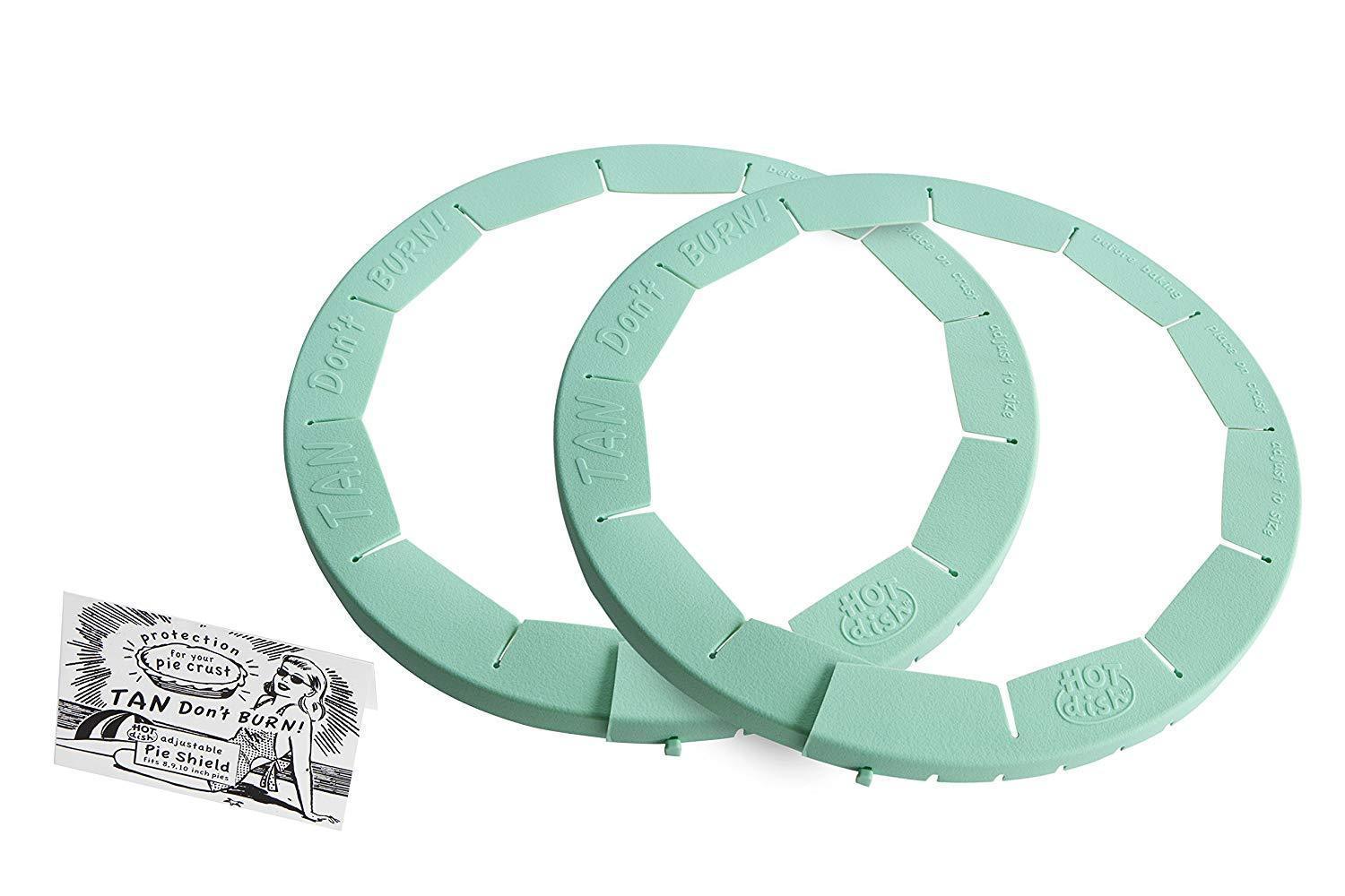 Tan, don’t burn your beautiful pie; the Talisman Designs Adjustable Pie Shield protects your pie crust while baking so the center gets a nice golden glow but the edges don't burn Adjustable, the pie shield easily adjusts to fit any size pie pan, 8 to 11.5-inch including rimmed dishes Set includes 2 pie shields have reusable one-piece design makes it easy to use and much better than tin foil; flexible silicone makes it easy to store Made of BPA-free and FDA food-safe silicone; heat resistant up to 500-degree Fahrenheit