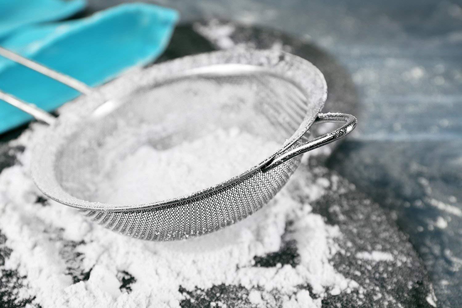 Utopia Kitchen Set of 3 Stainless Steel Mesh Strainer Colander Sieve with Handles - Small, Medium and Large - Ideal for Straining Quinoa, Spaghetti, Yogurt, Tea and More