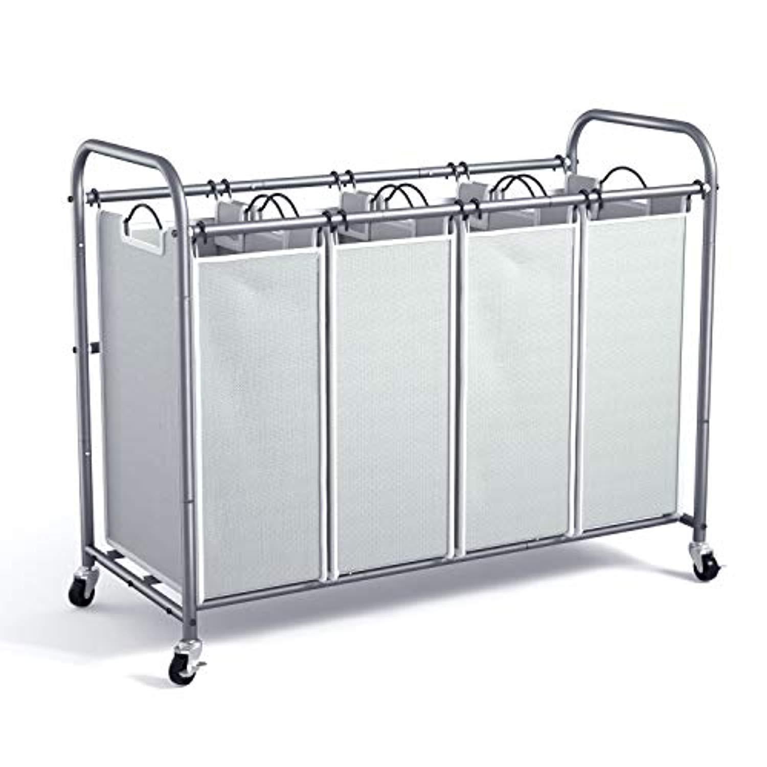 WeHome 4 Bag Laundry Sorter Cart, Laundry Hamper Sorter with Heavy Duty Rolling Wheels for Clothes Storage, Grey
